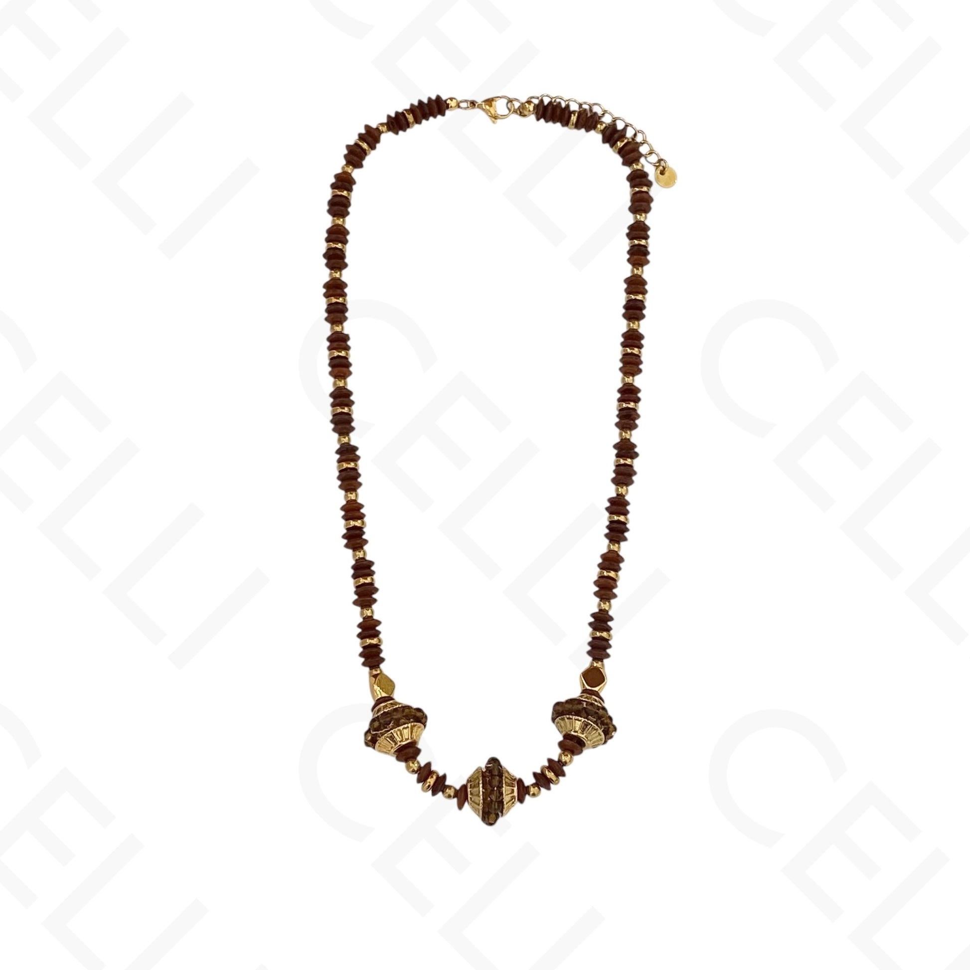 Colar de aço - contas de madeira discos