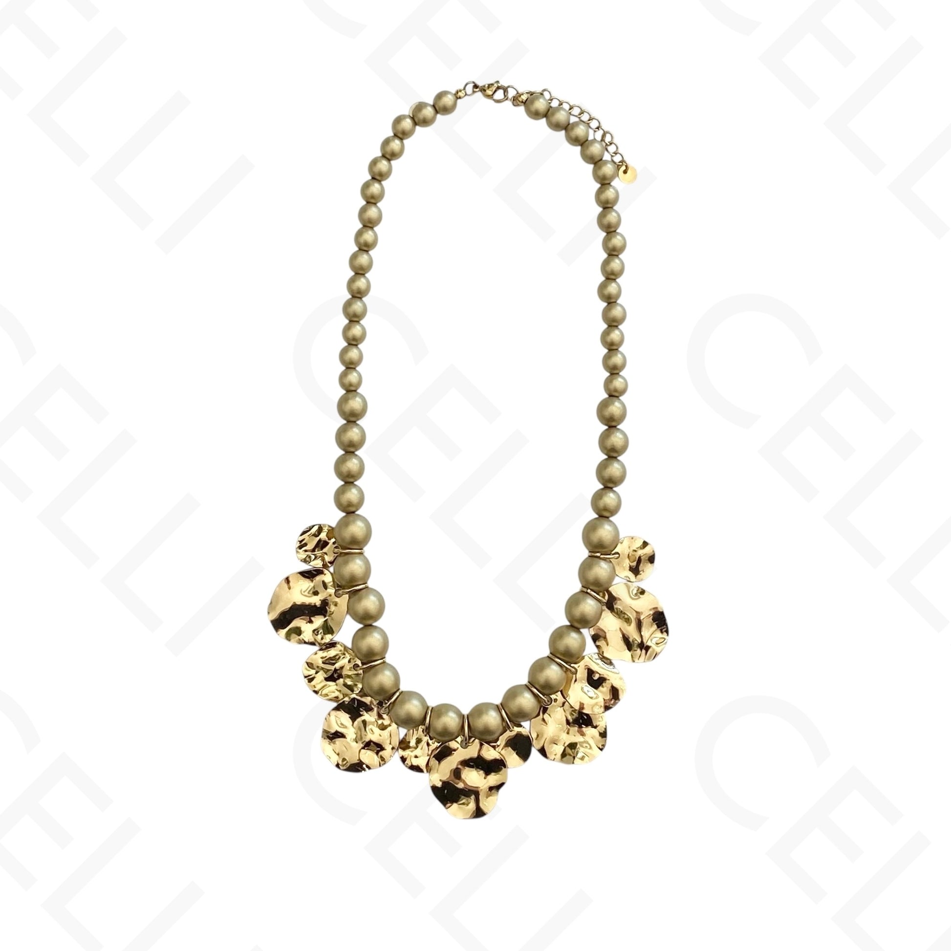 Colar de aço - contas em dourado com multi pendentes martelados