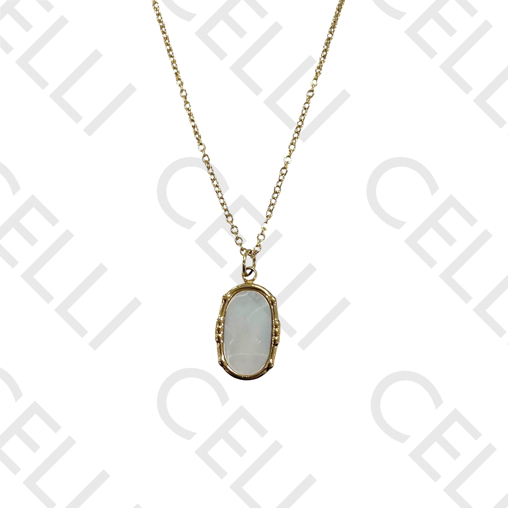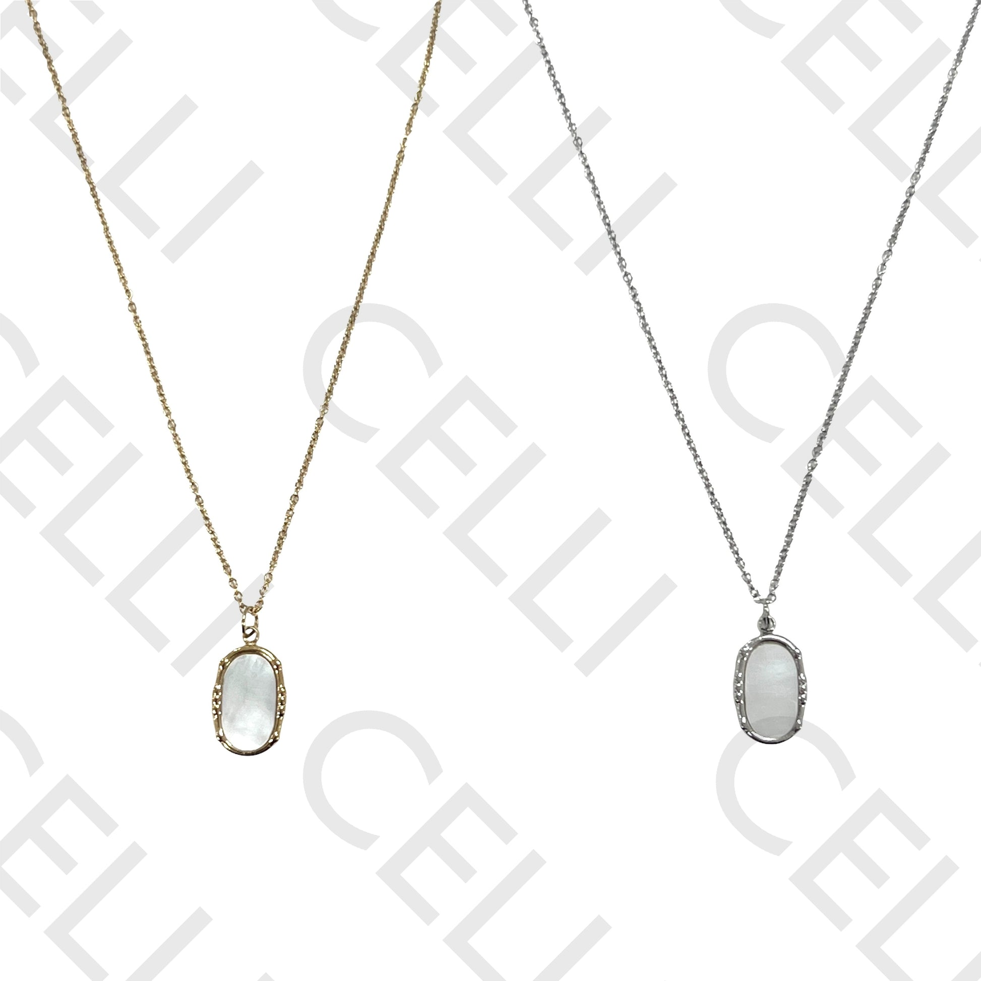 Colar de aço - madrepérola oval Colar de aço - madrepérola oval Colar de aço - madrepérola oval