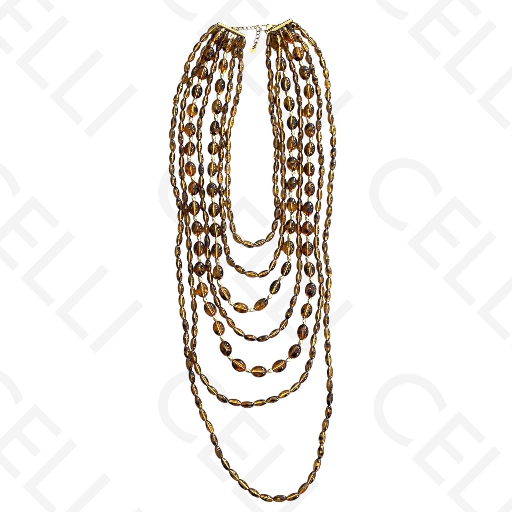 Colar de aço - resina oval castanho Colar de aço - resina oval castanho
