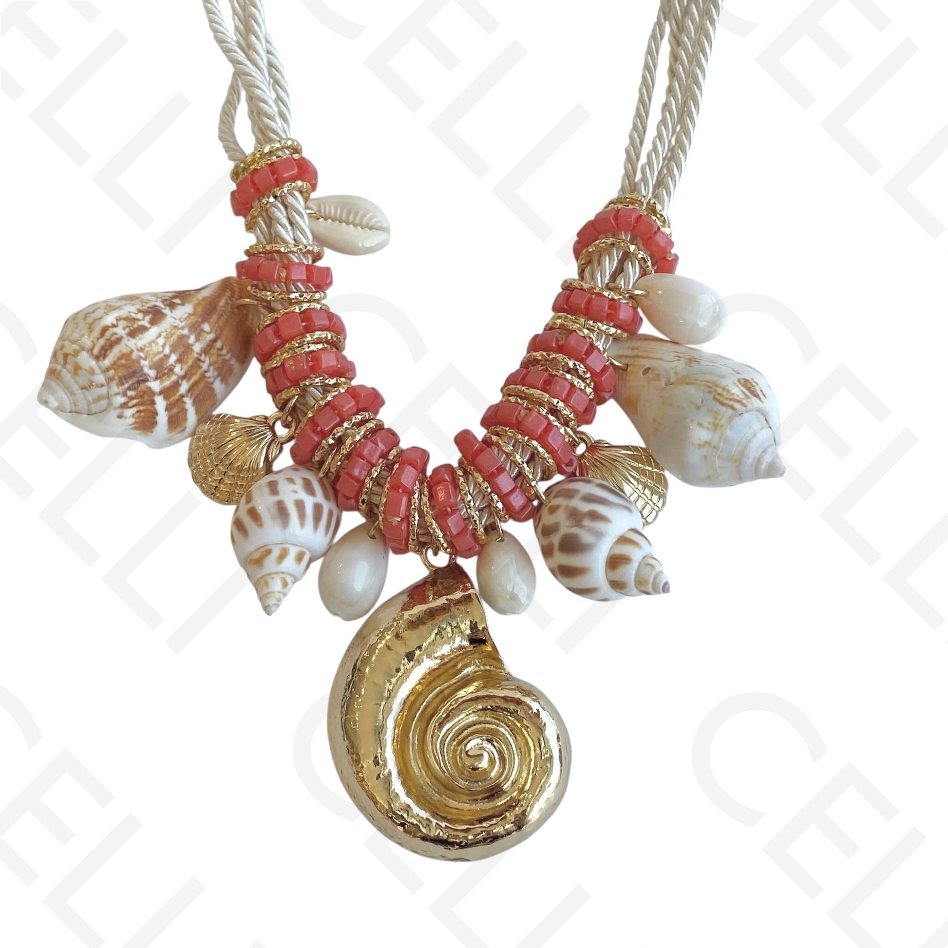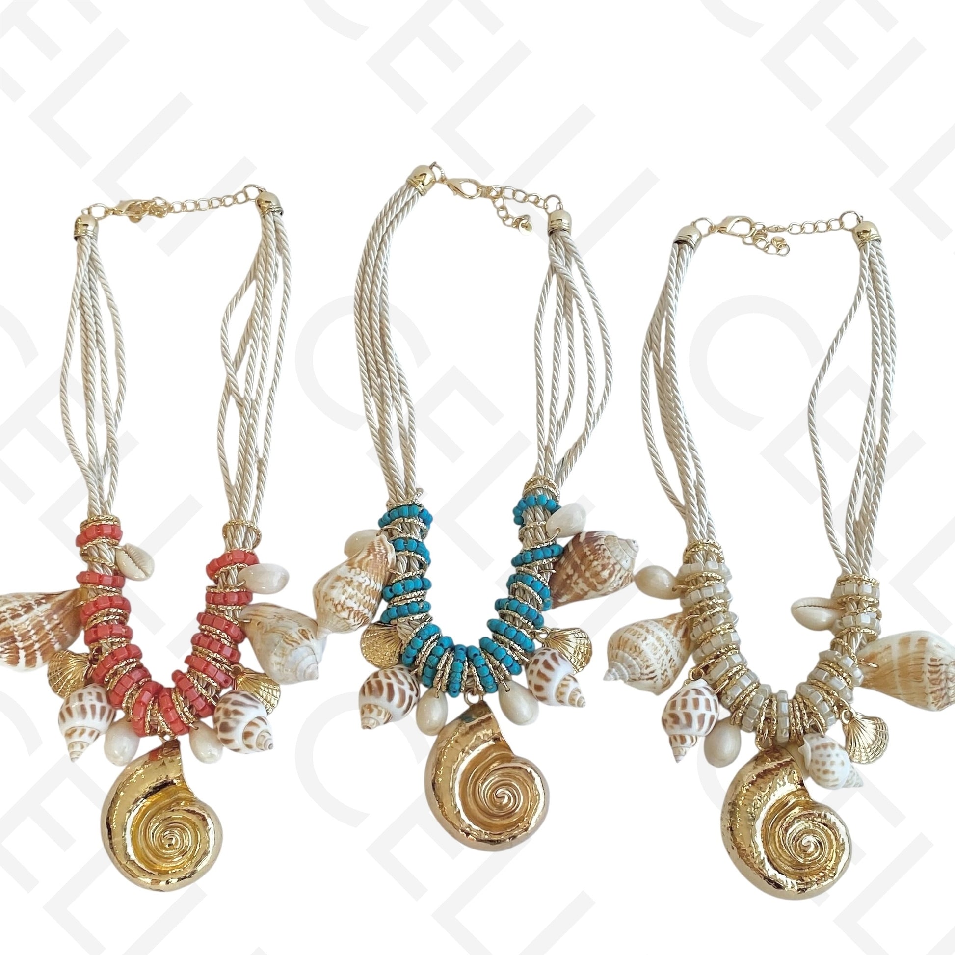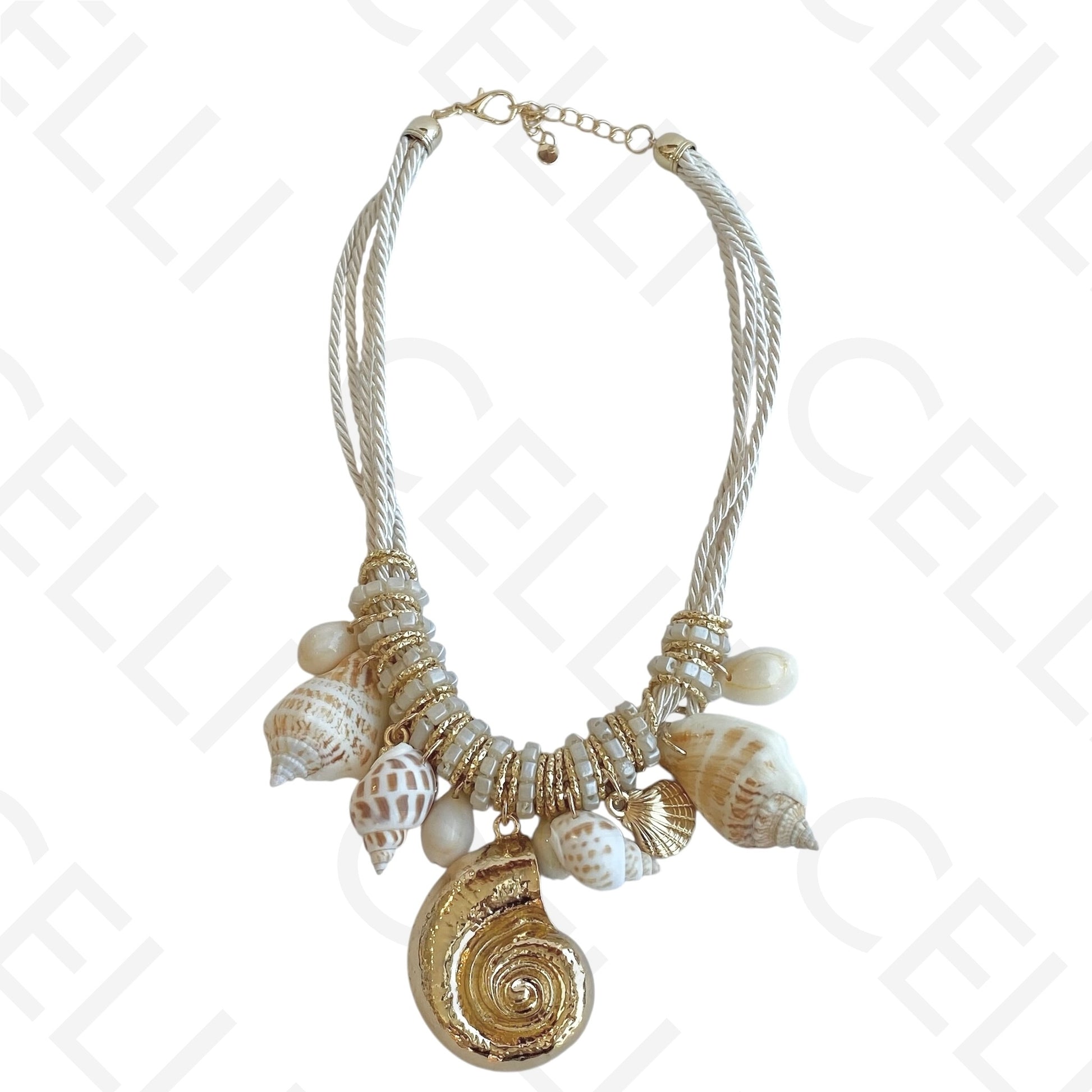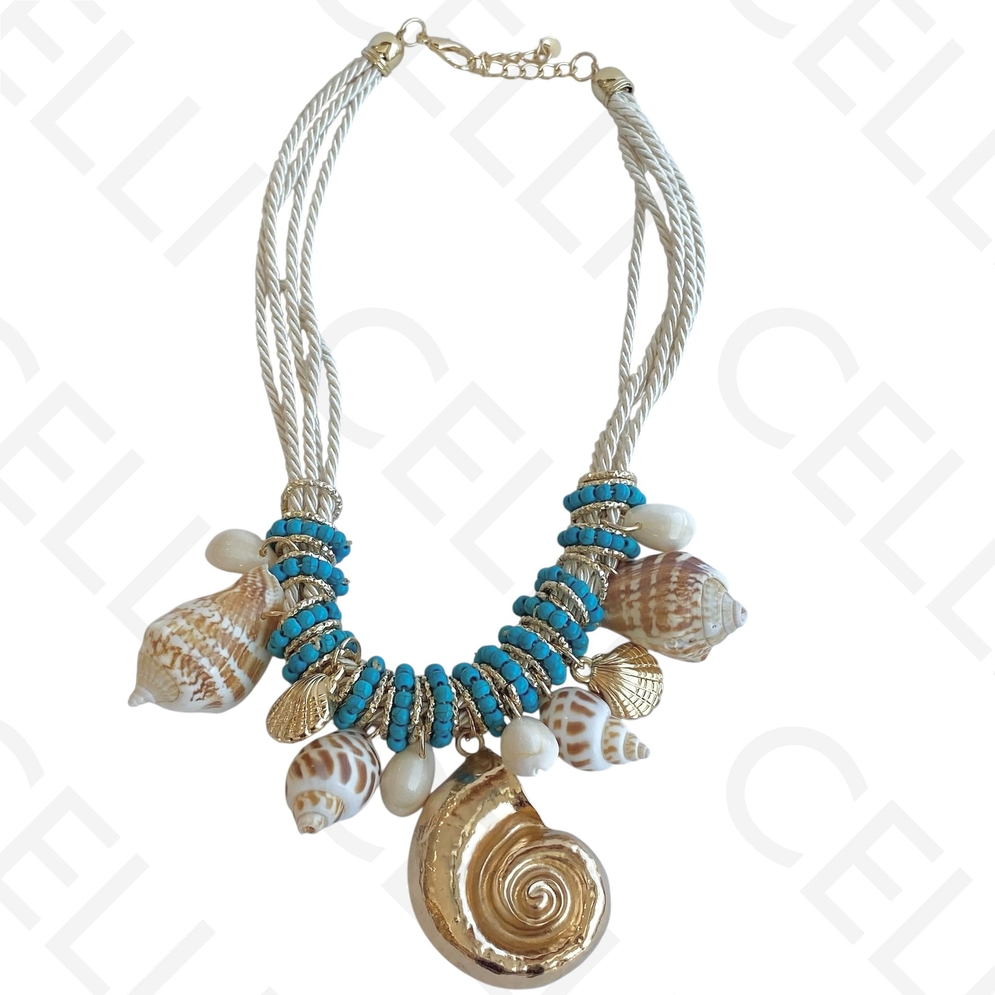 Colar de moda - cordão com búzios naturais e pendente de búzio