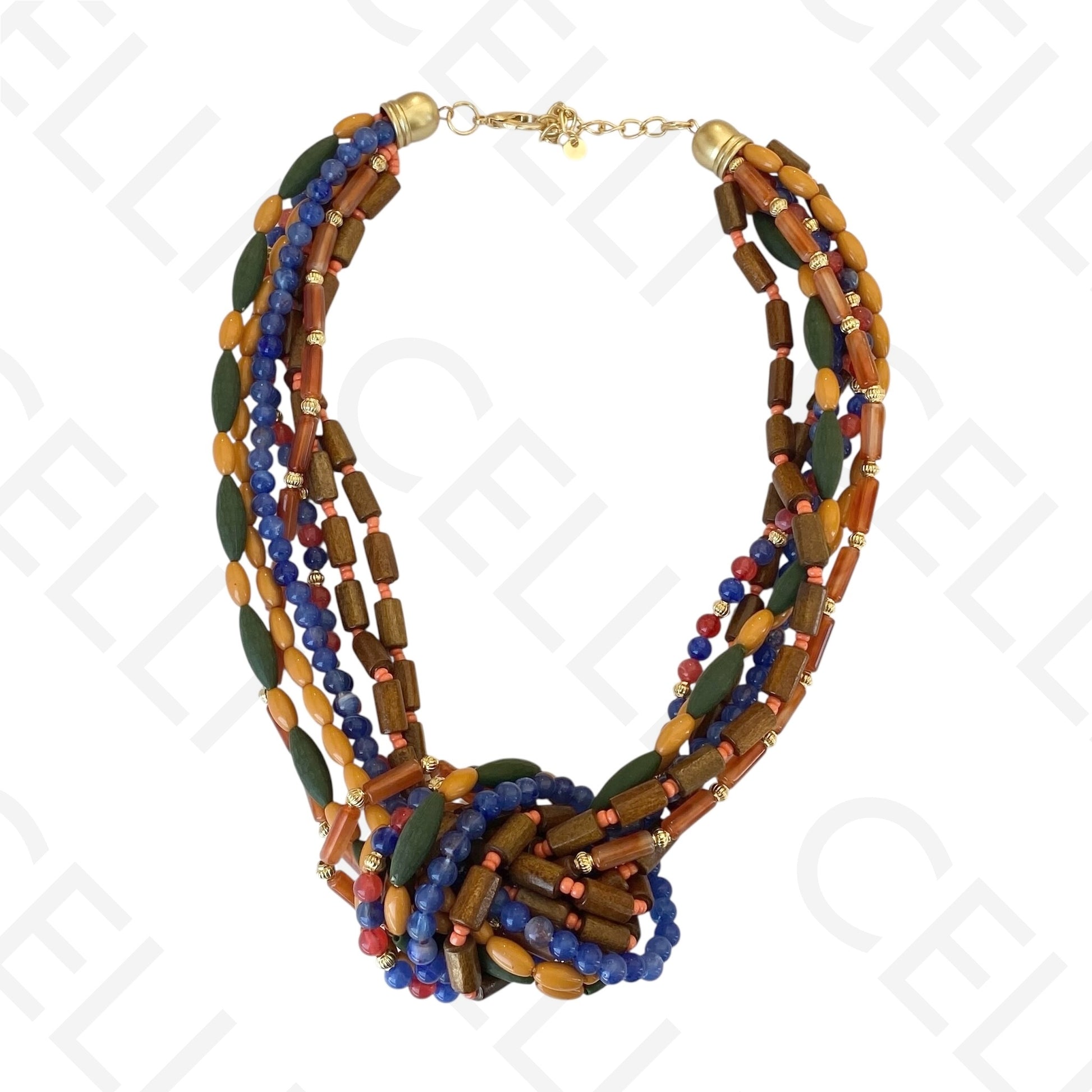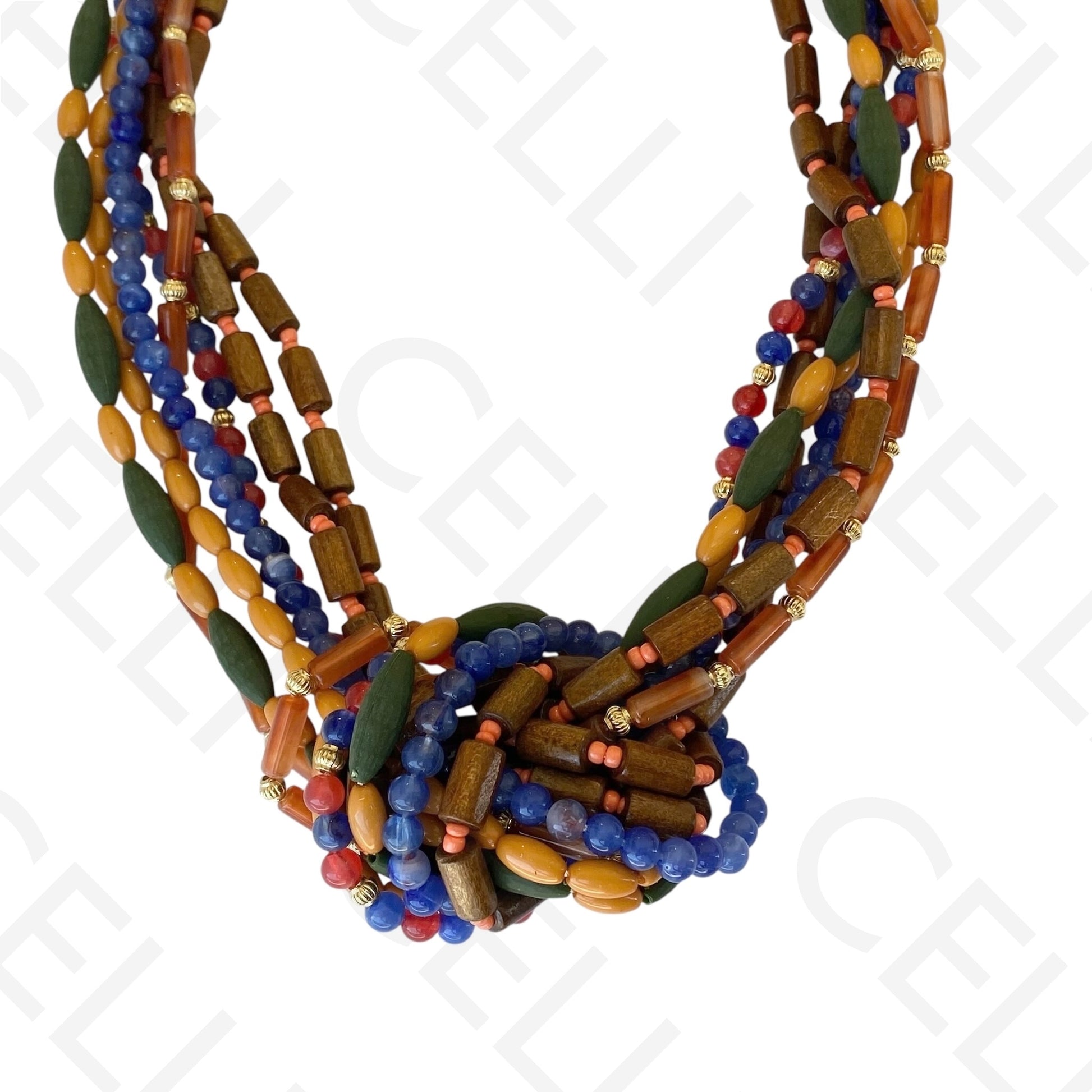 Colar de moda - multi fio de contas de madeira