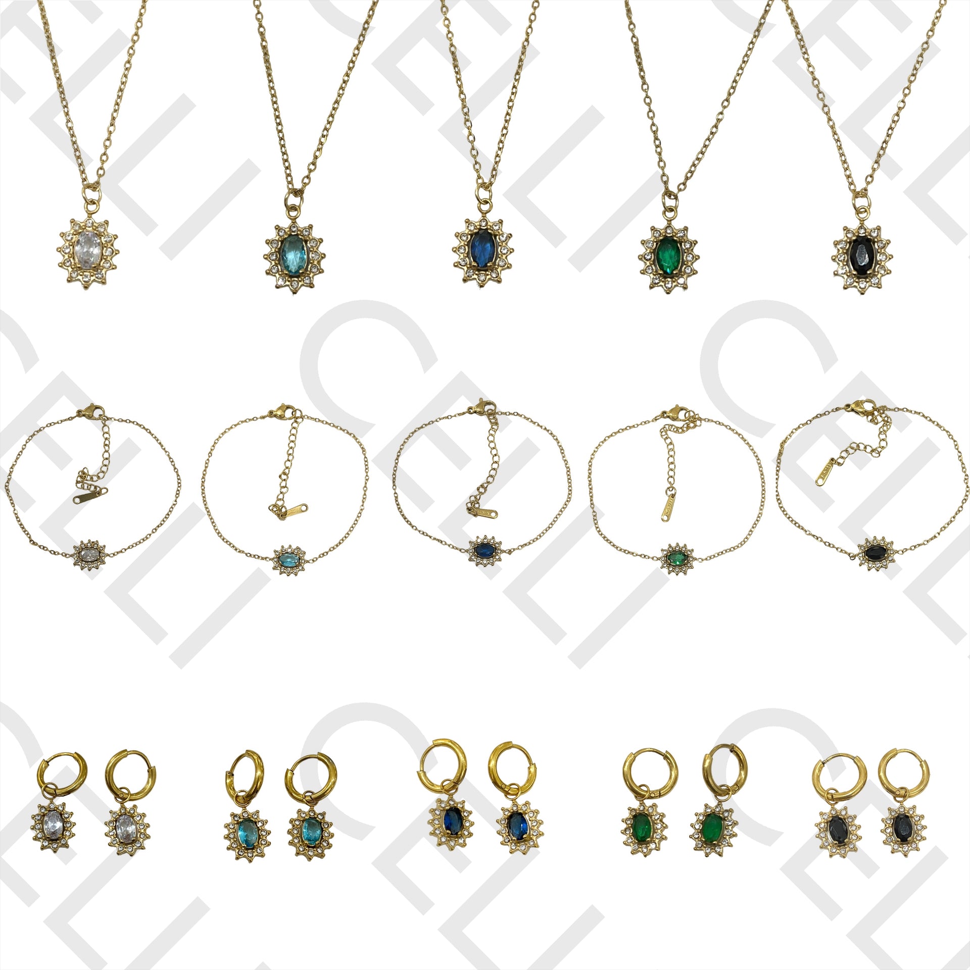 Colar / Pulseira / Brinco de Aço - brilhantes simples
