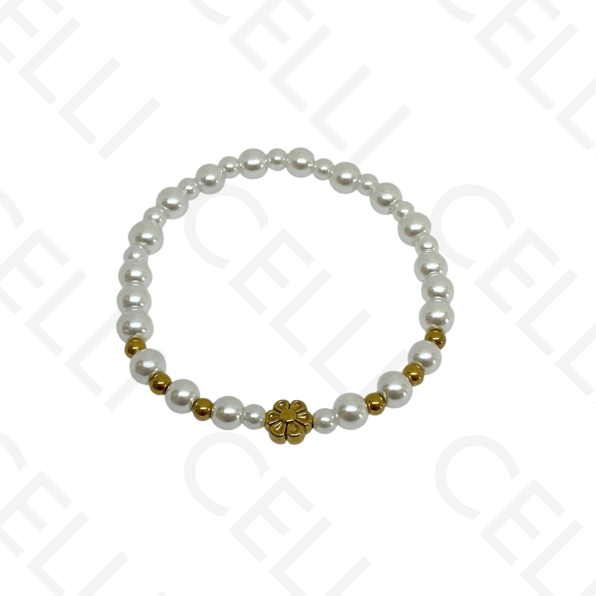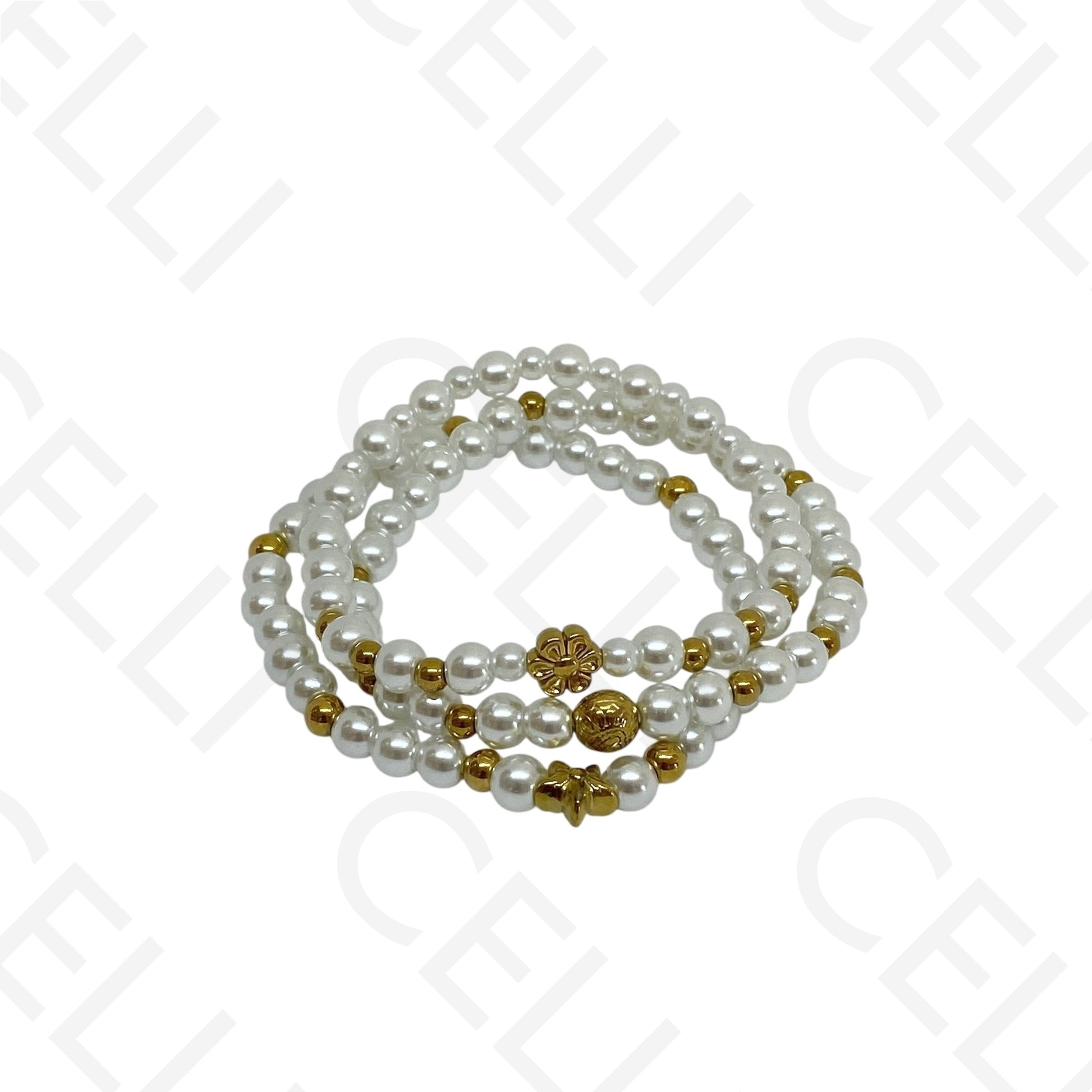 Pulseira de aço elástica- pérolas (conjunto de 3)