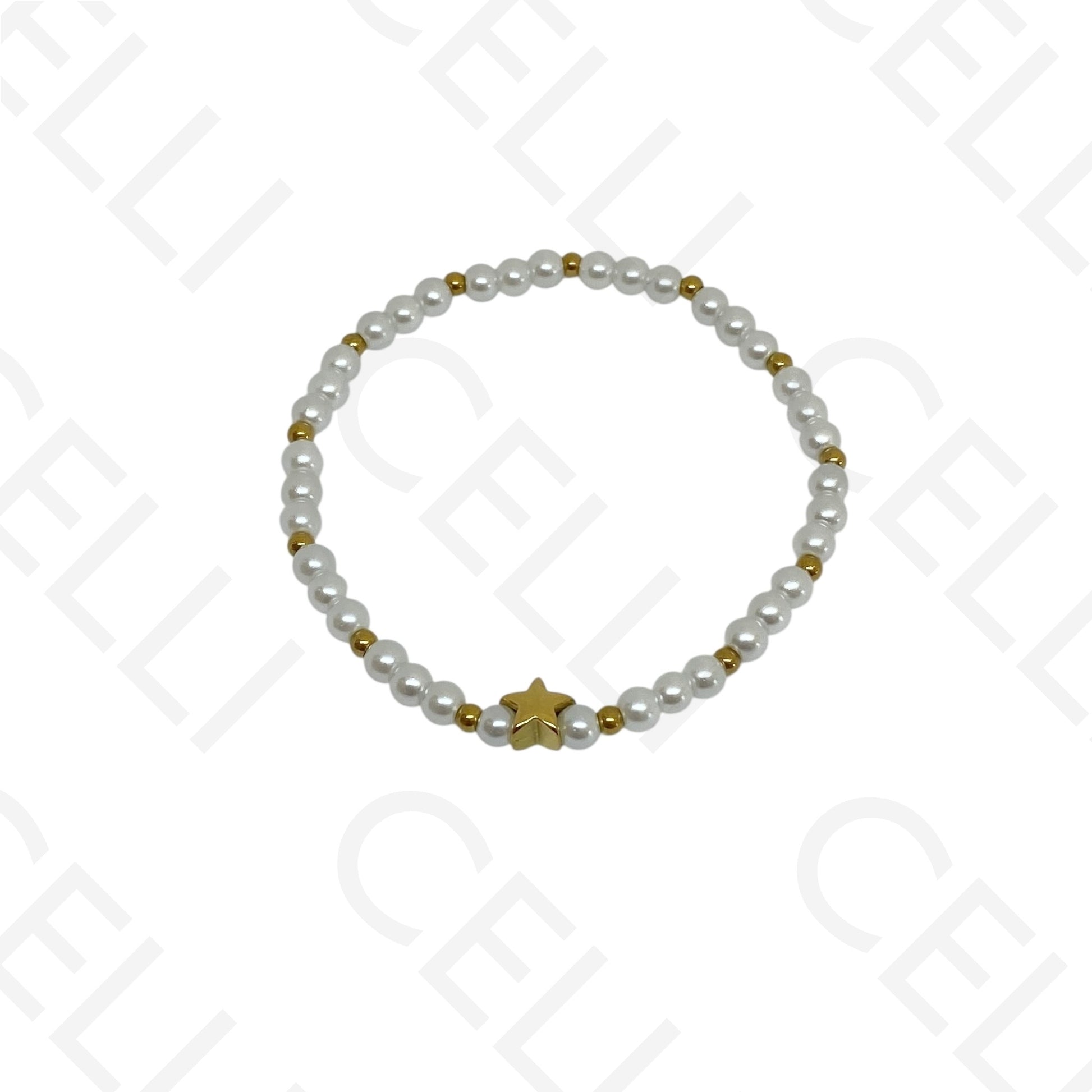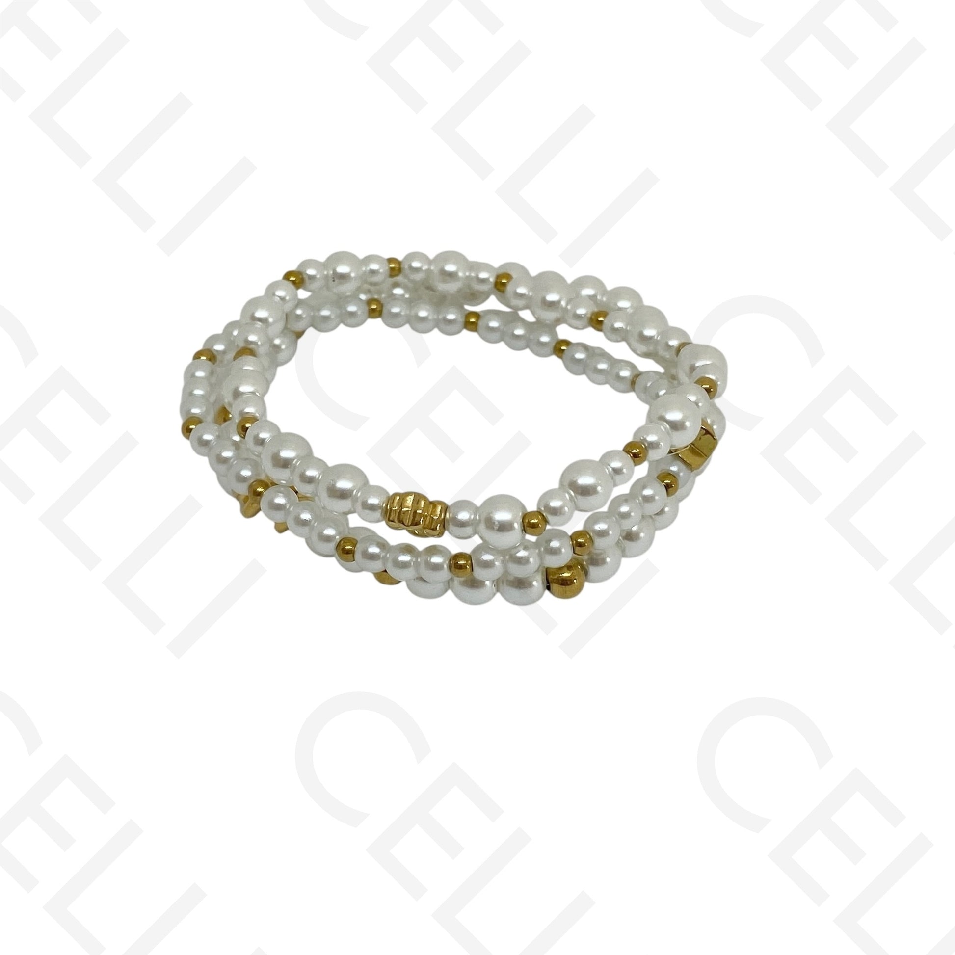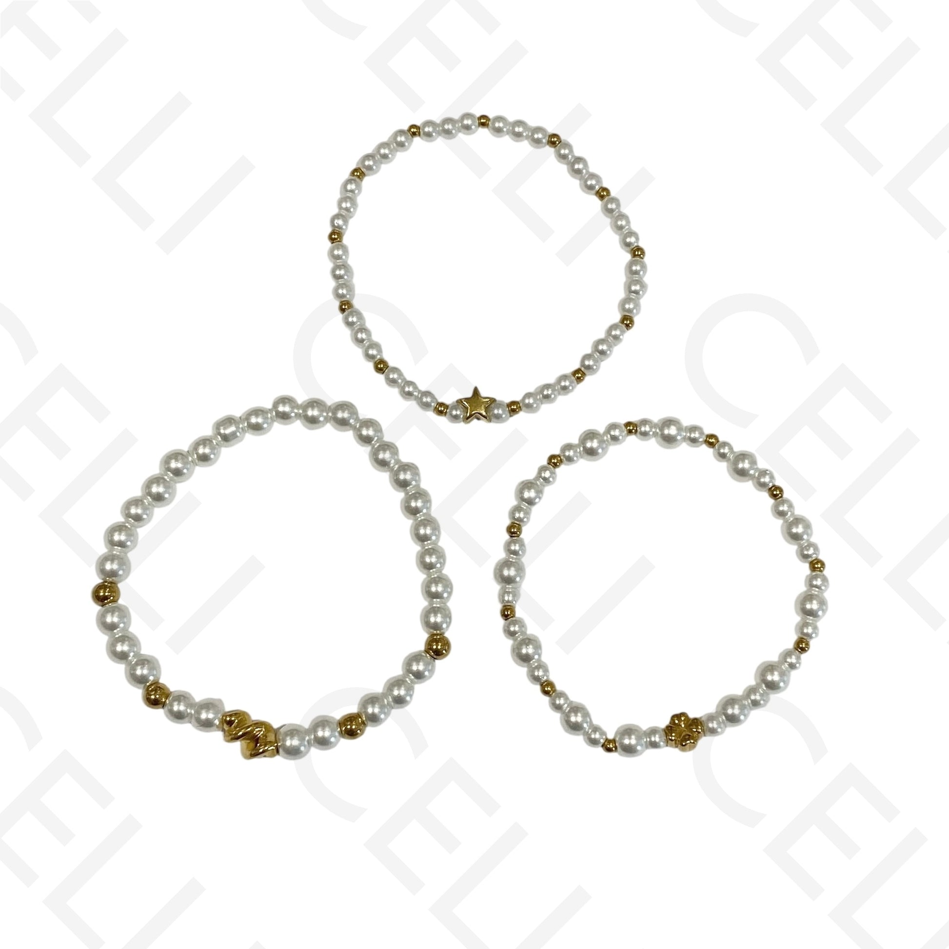 Pulseira de aço elástica- pérolas (conjunto de 3)
