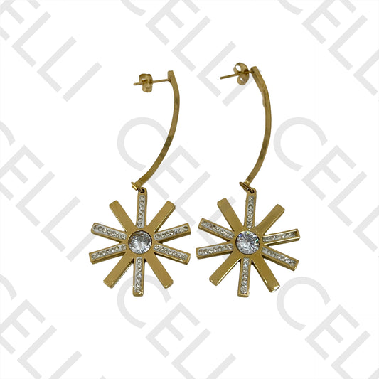 • Brinco de Aço - flor com brilhantes