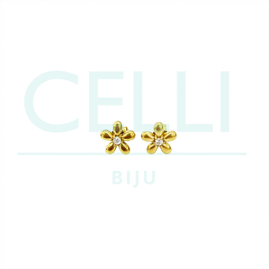 Brinco de Aço com medalhinha mini - flor com brilhante