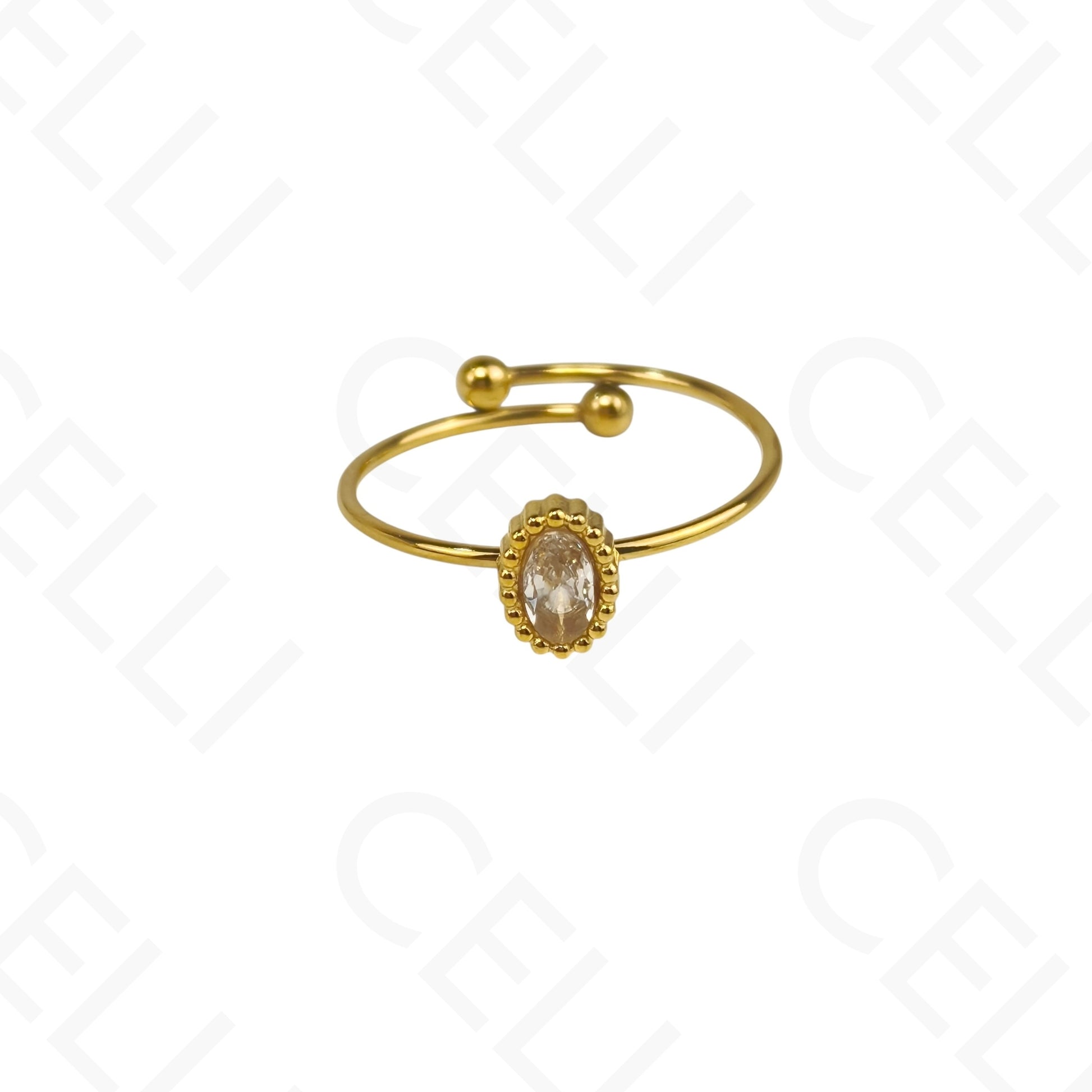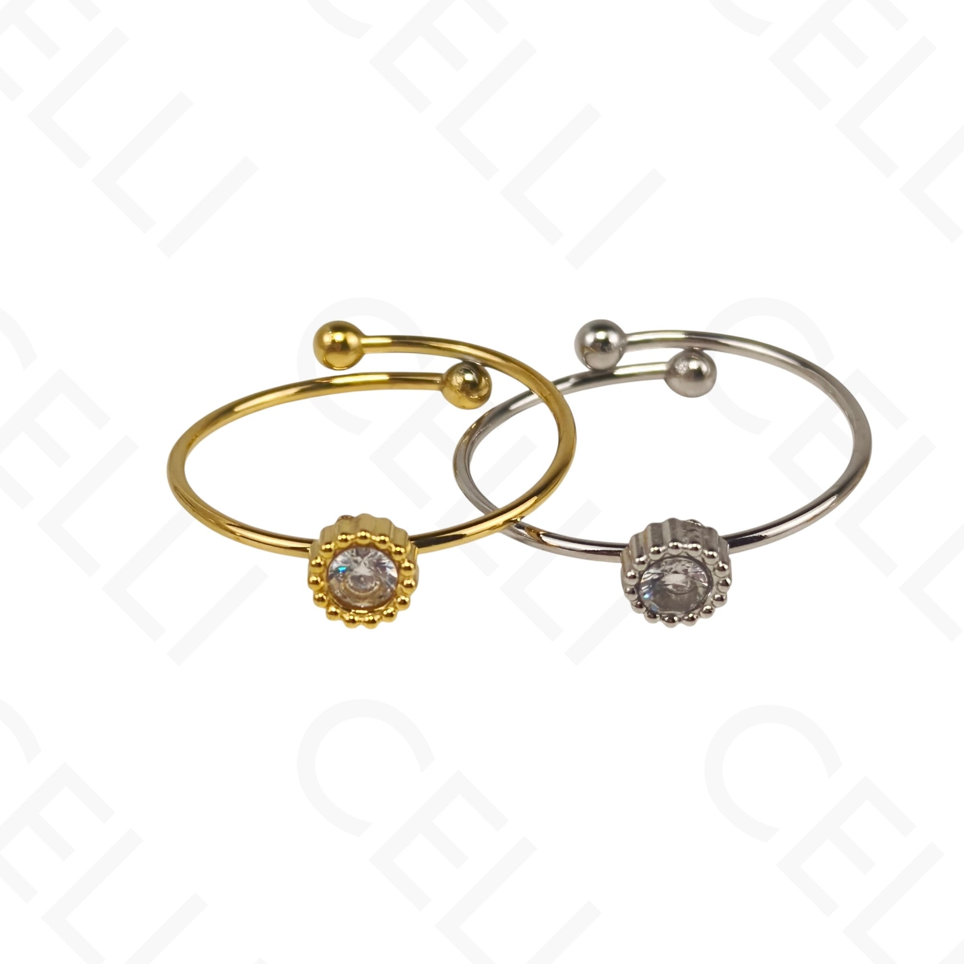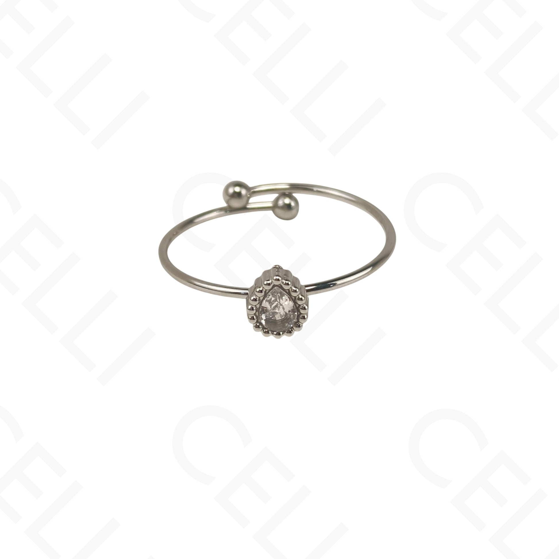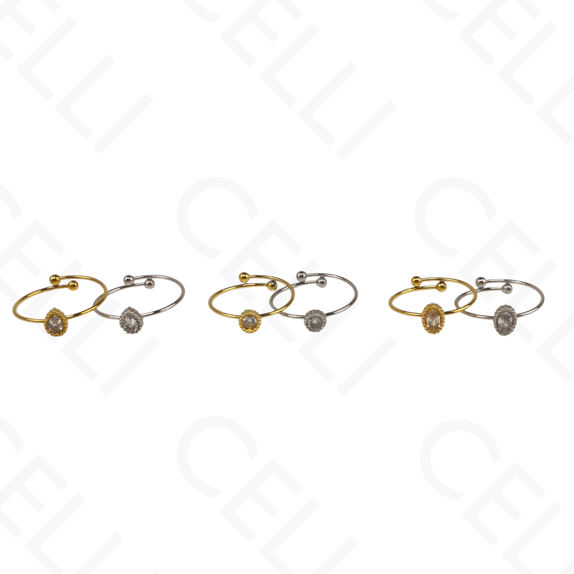 Anel de Aço Ajustável - Gota, Redondo e Oval com brilhante