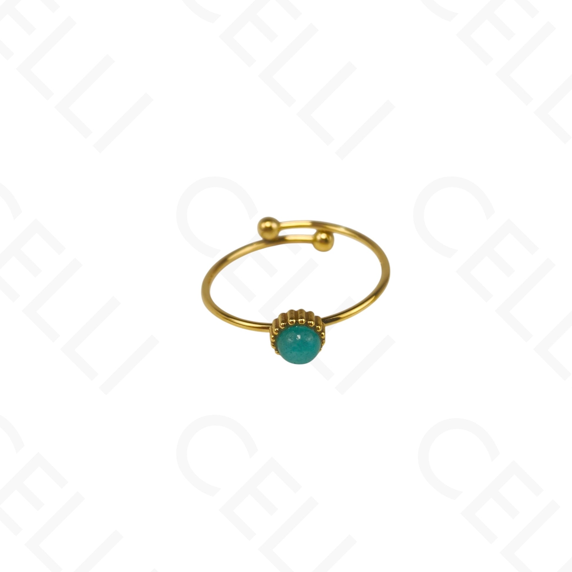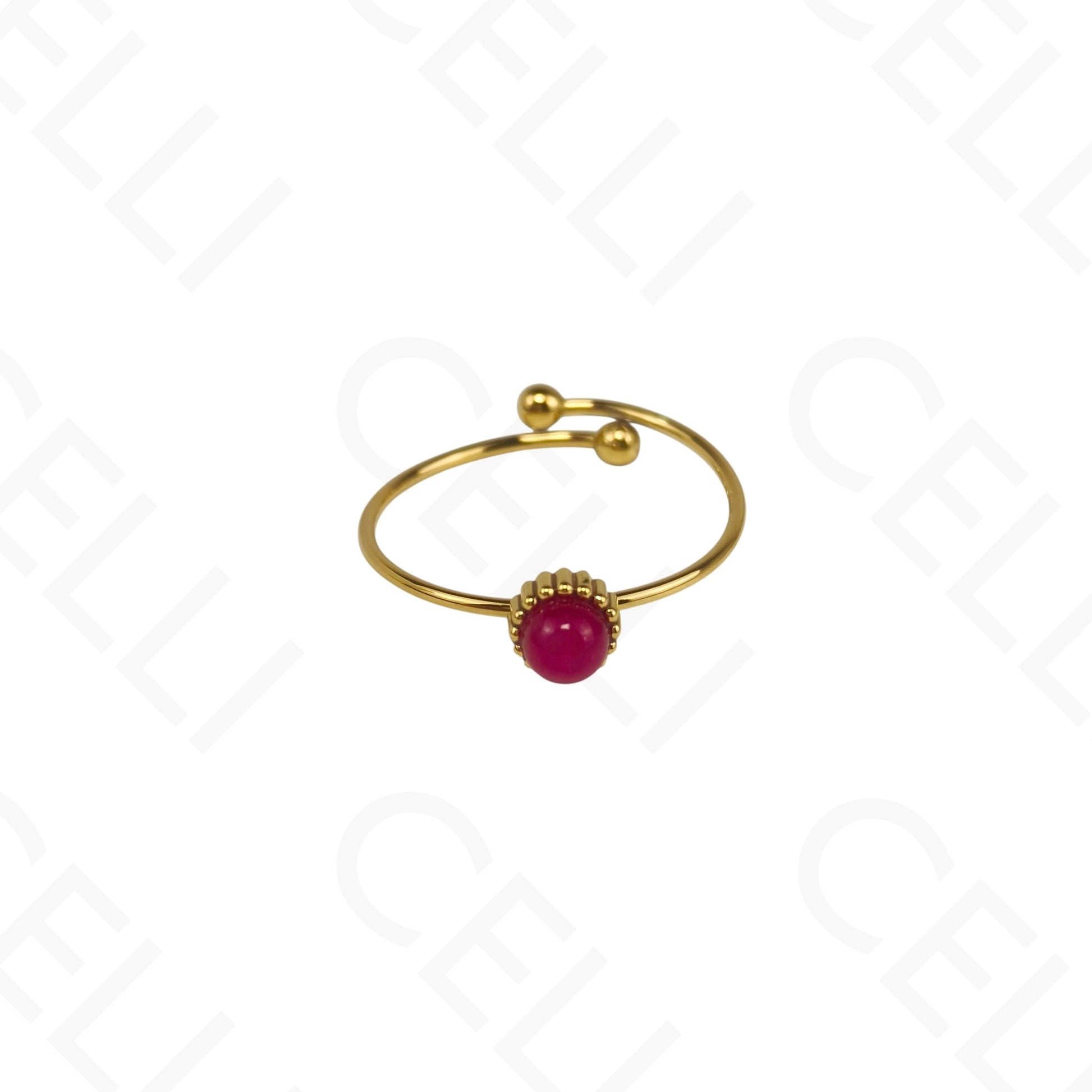 Anel de Aço Ajustável - mini pedra natural redonda (6 cores)