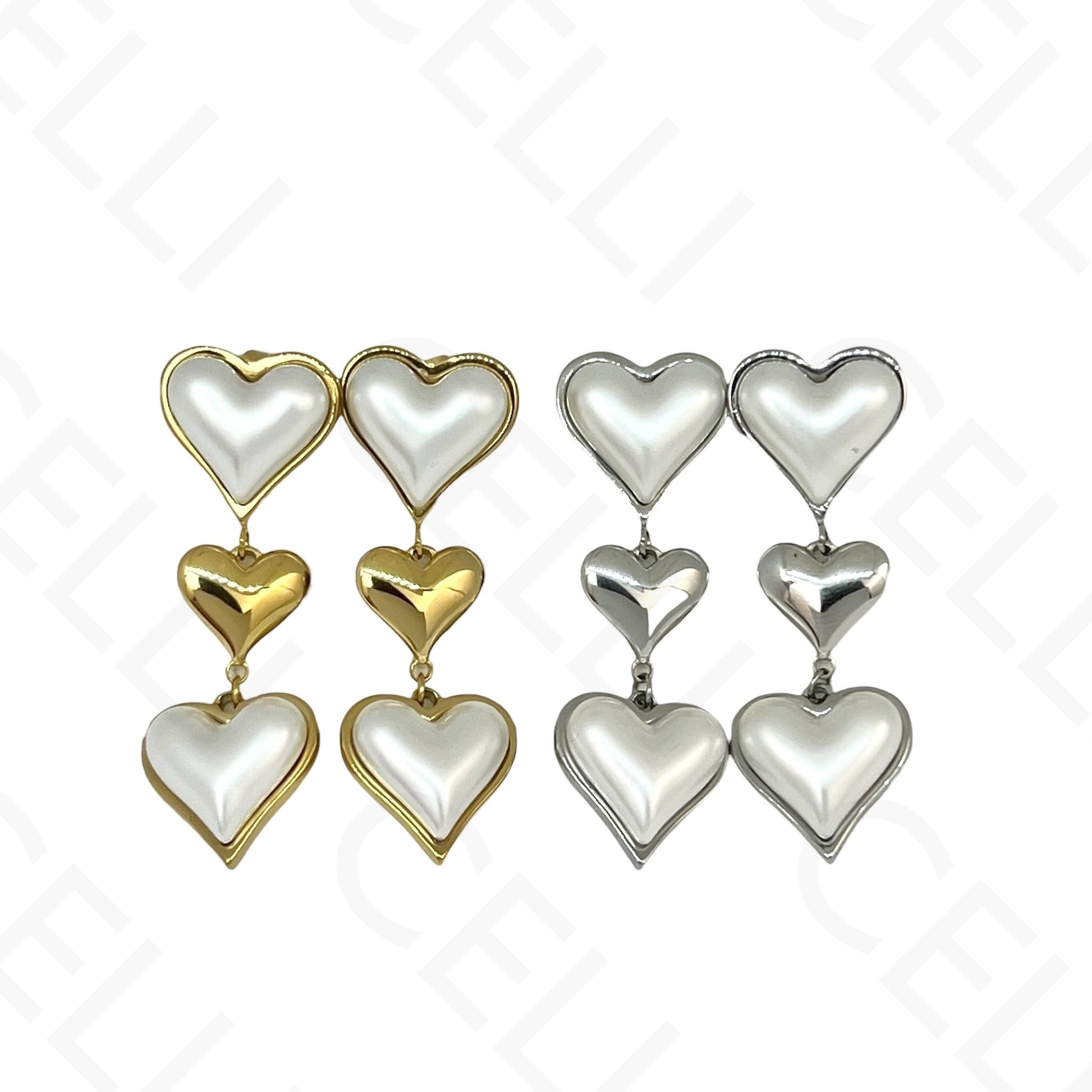 Brinco de aço - corações com pérolas