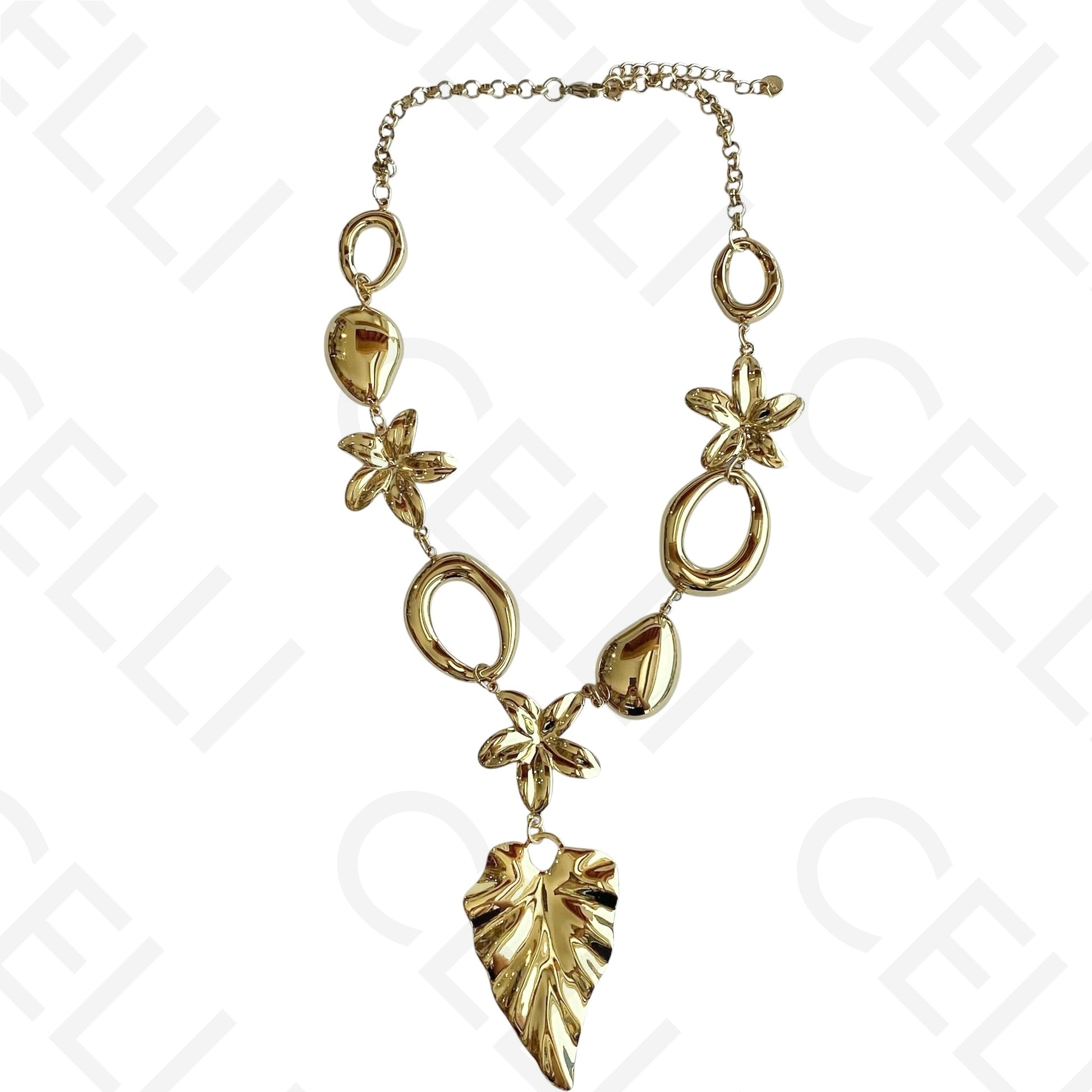 Colar de aço - folha e flores
