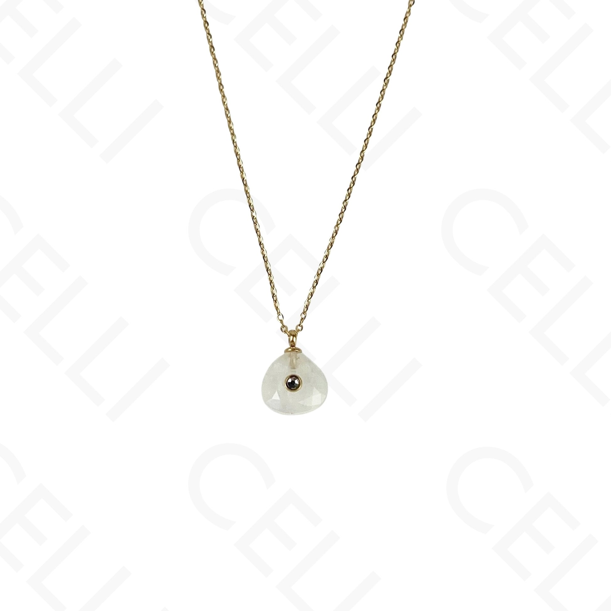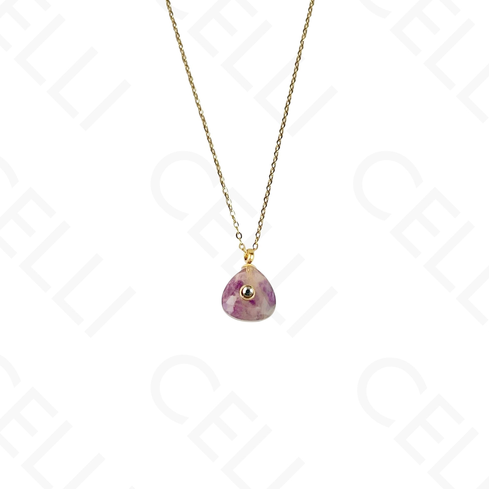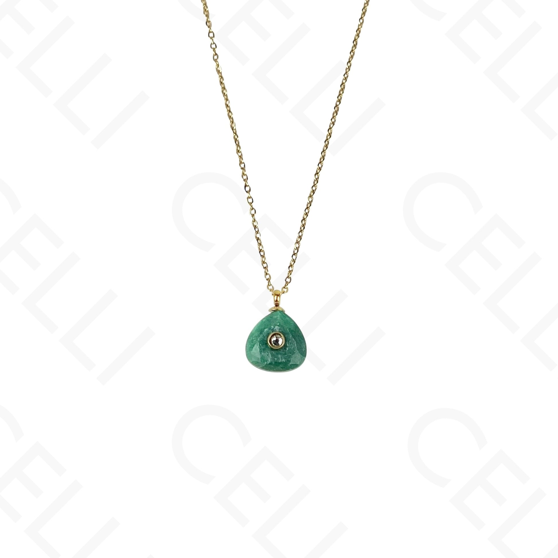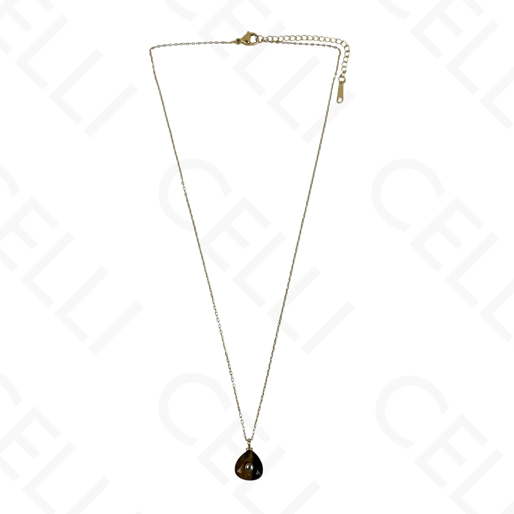 Colar de aço - pedra natural triângulo com brilhante (6 cores)