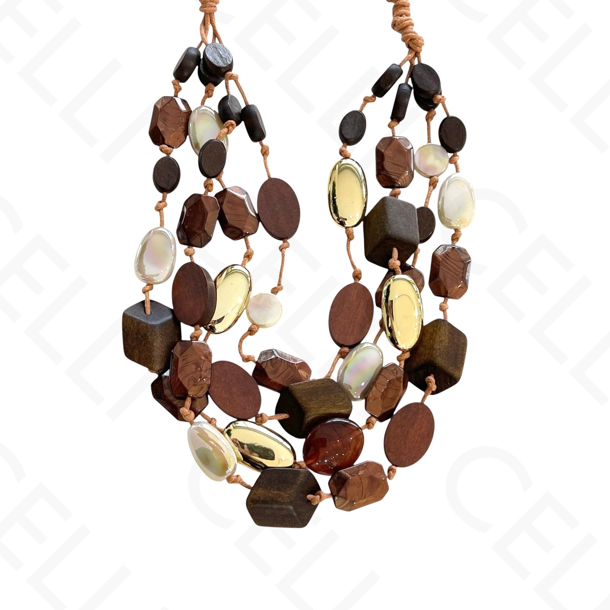 Colar de moda - múltiplo com contas de madeira