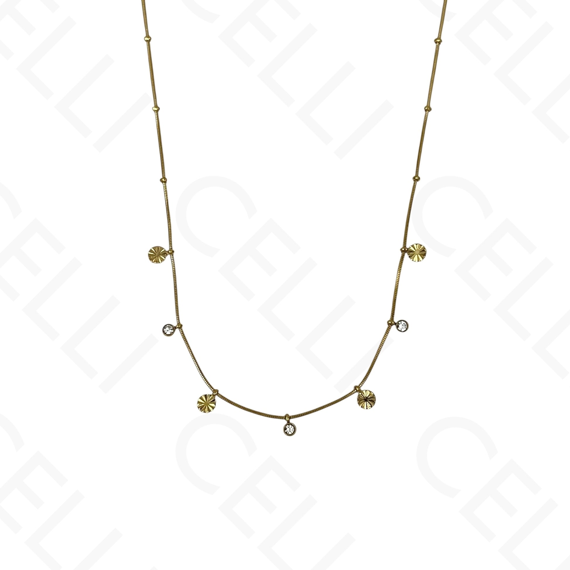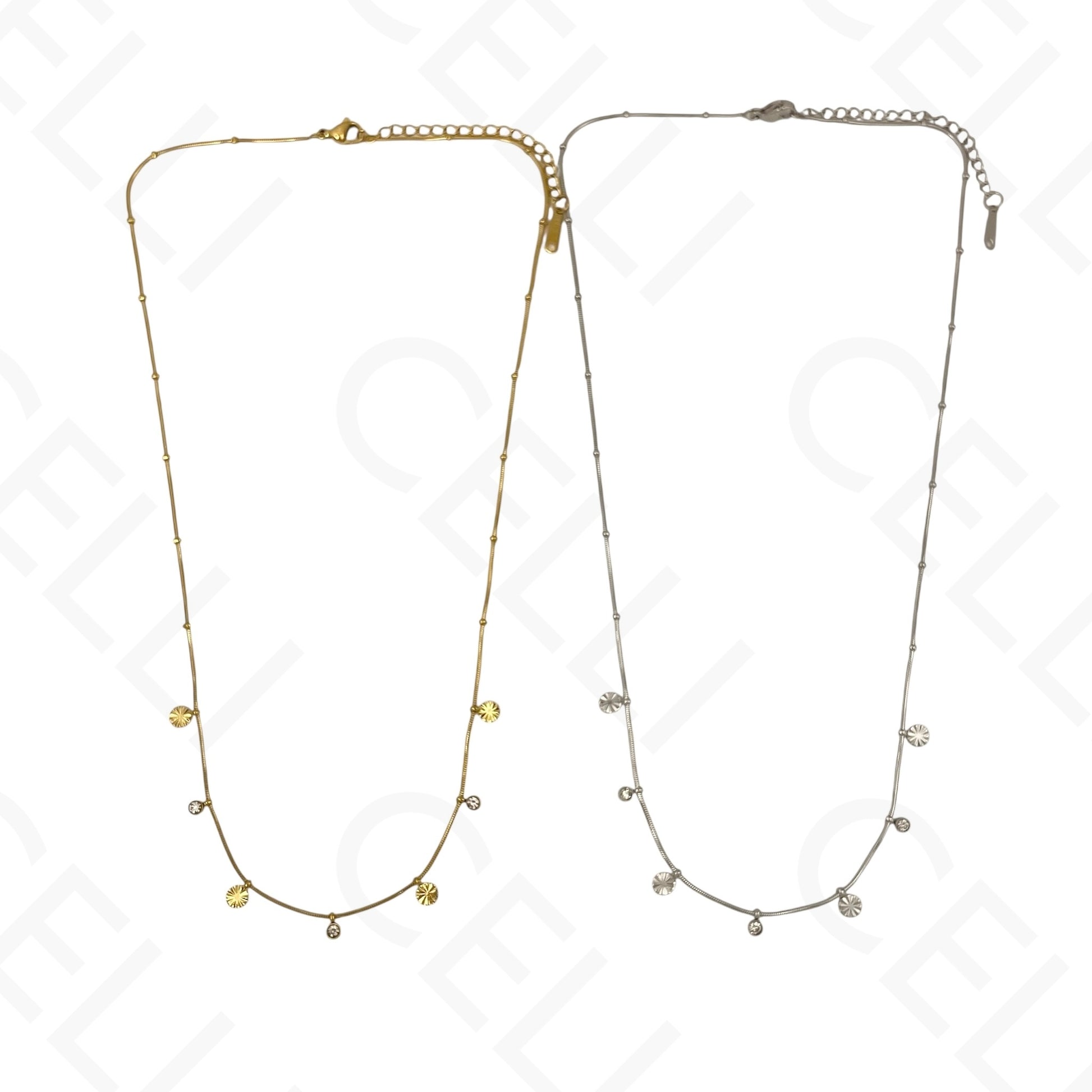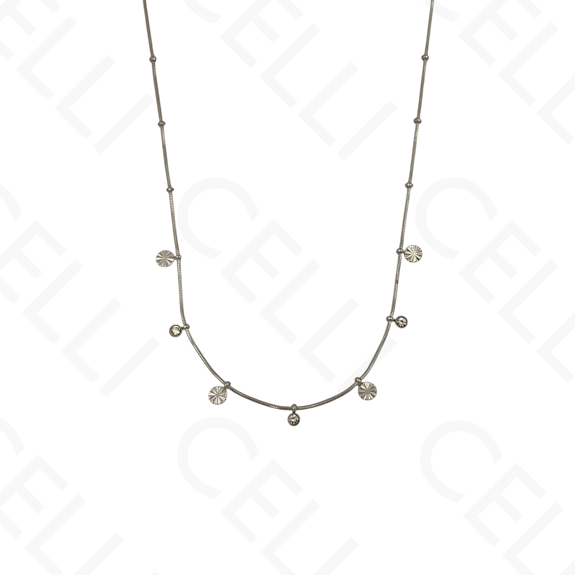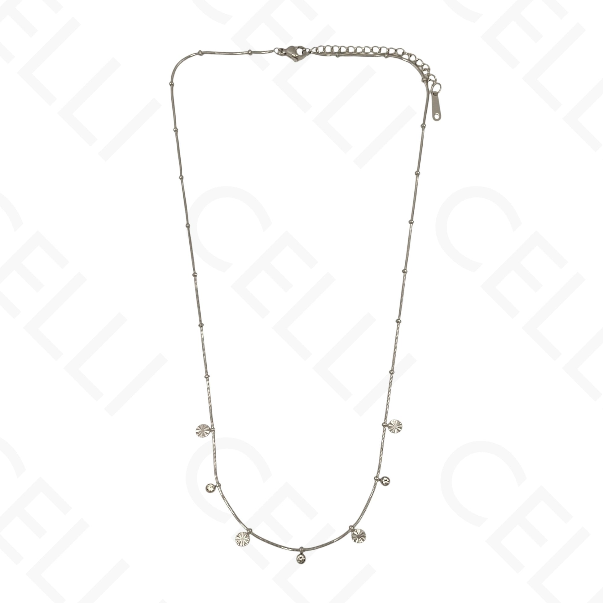 Colar/Pulseira de aço - mini pendentes redondos com brilhantes