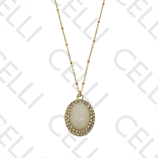• Colar de Aço (malha oval achatada com bolinhas) - medalha pedra e brilhantes