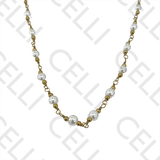 Colar de Aço simples - pérolas