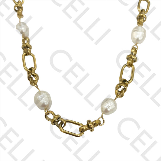 Colar de Aço - pérolas
