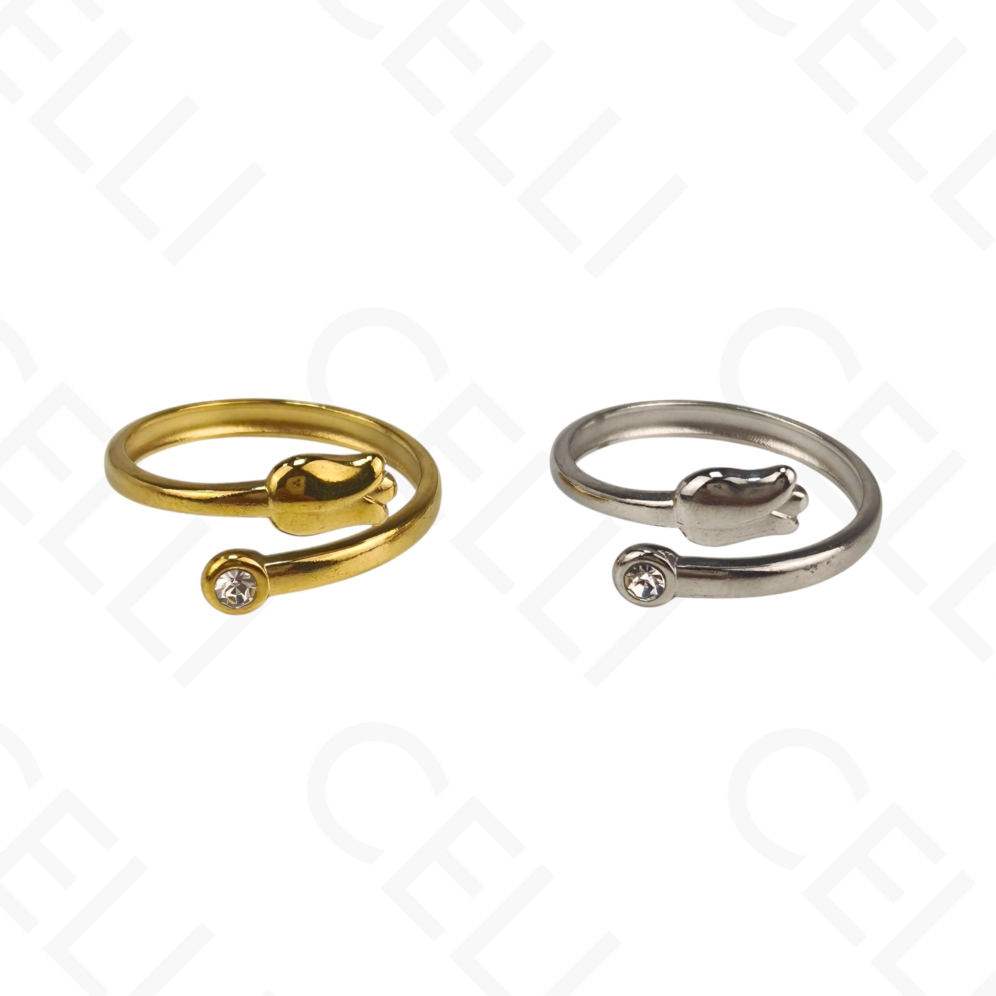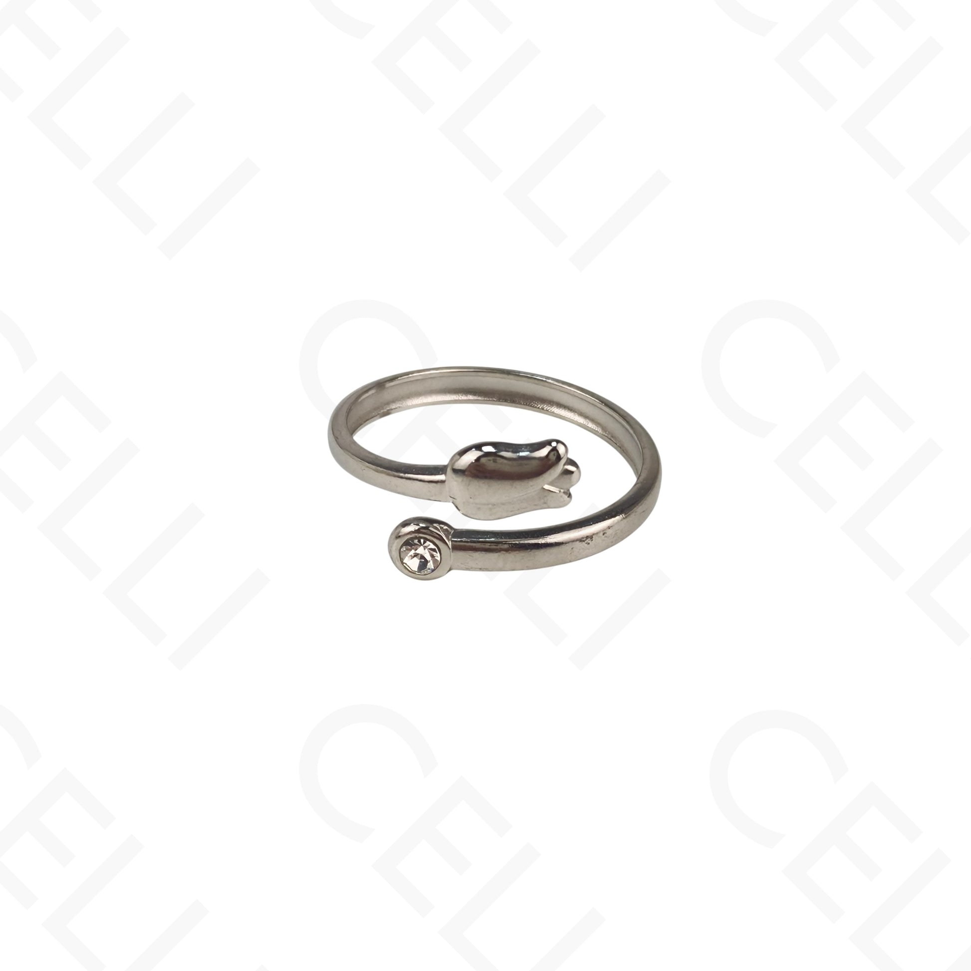 Anel de Aço Ajustável - tulipa com brilhante