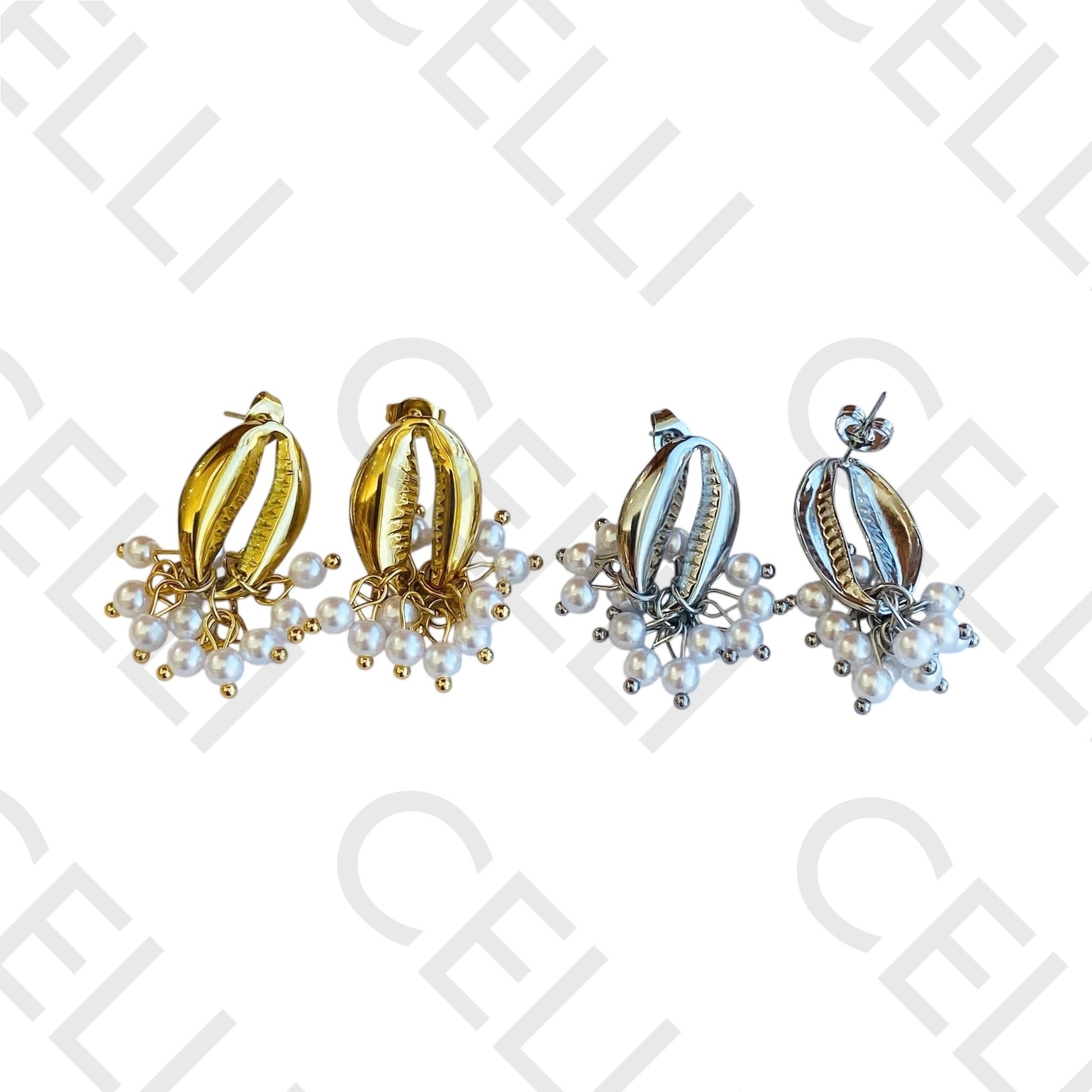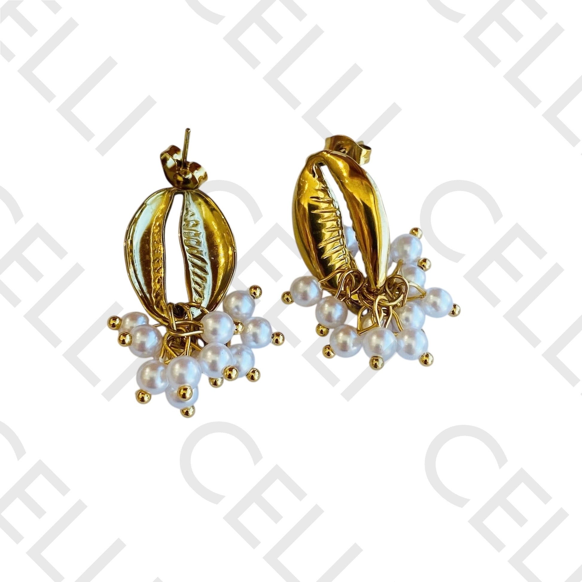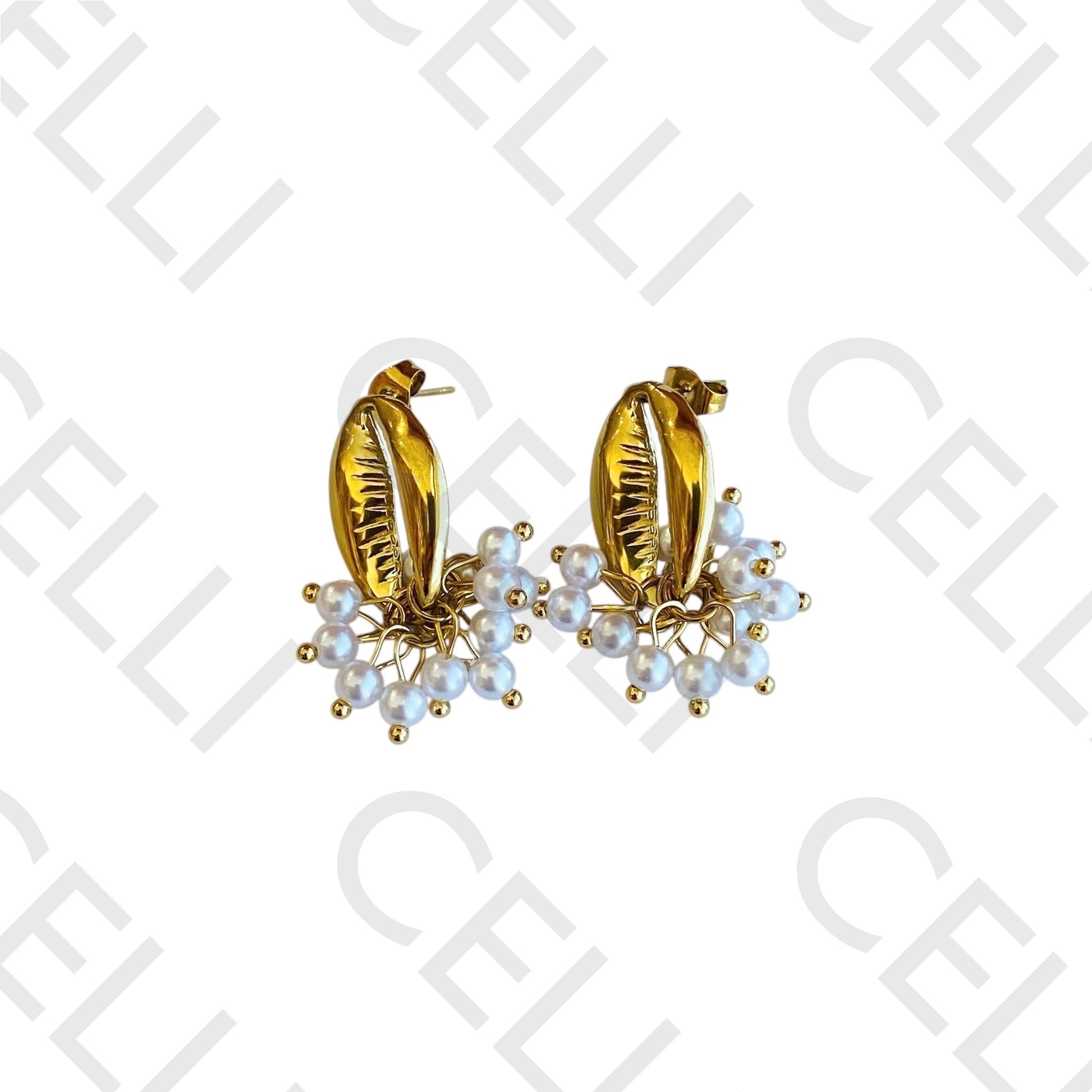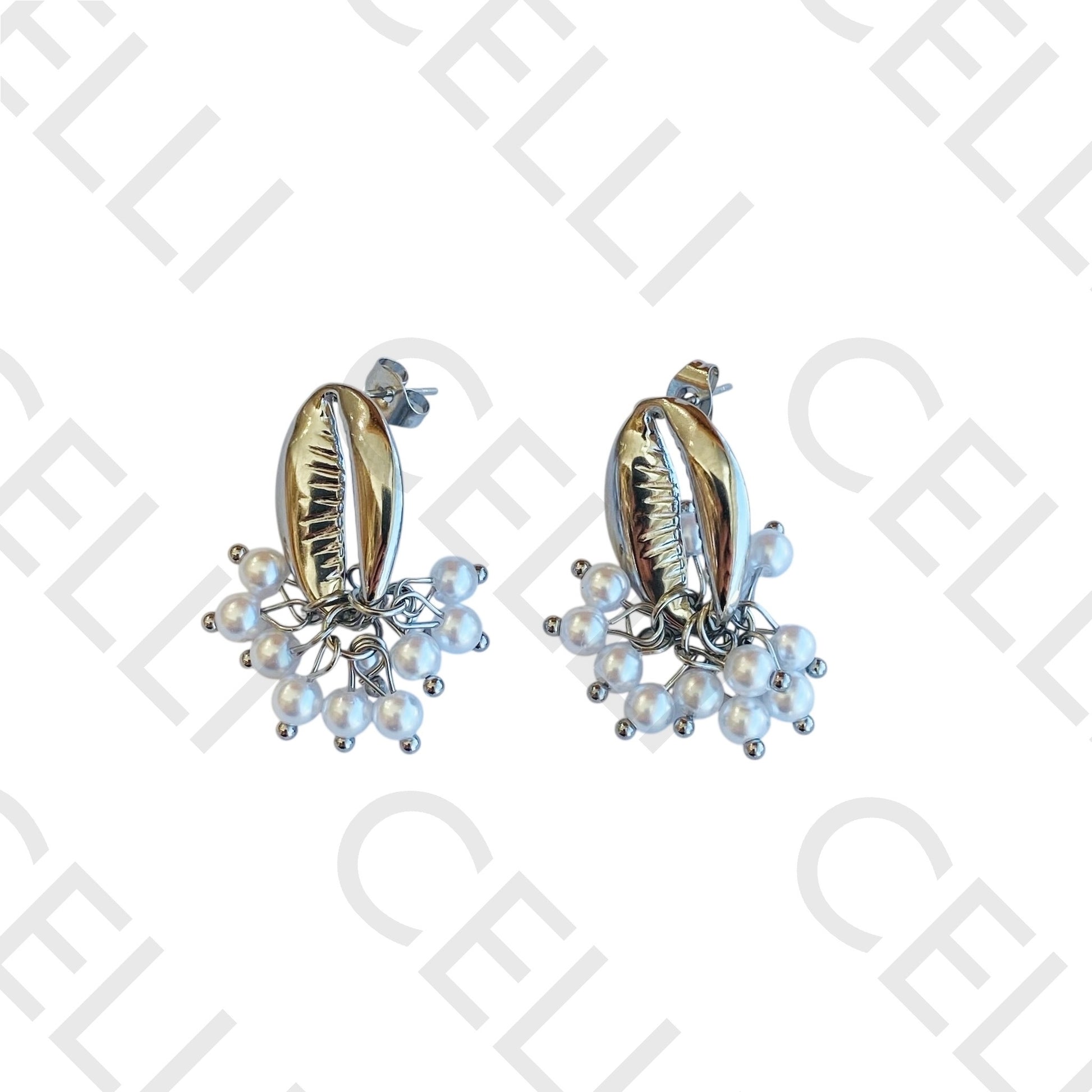 Brinco de aço - búzio beijinho com pérolas