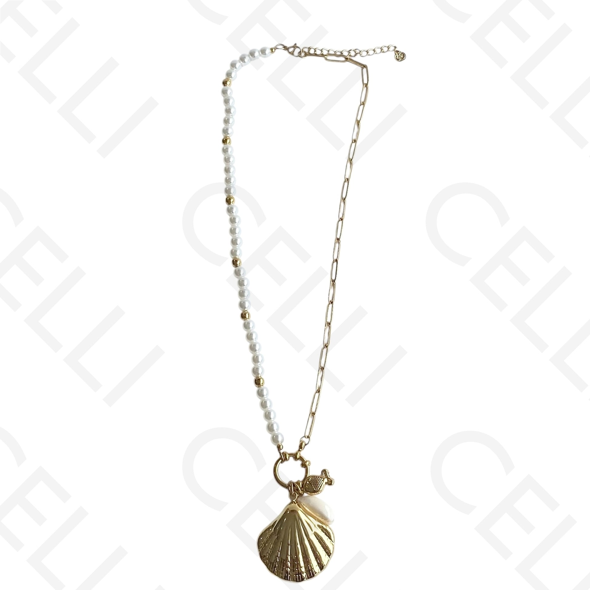 Colar de aço - concha e búzio natural Colar de aço - concha e búzio natural