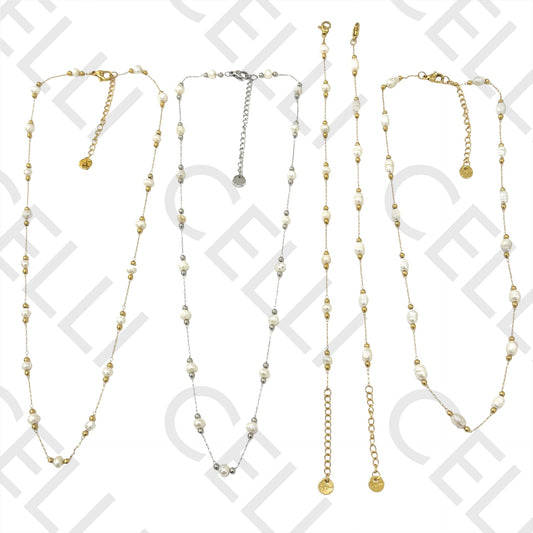 钢制项链/手链/脚链 - 贝壳带珍珠