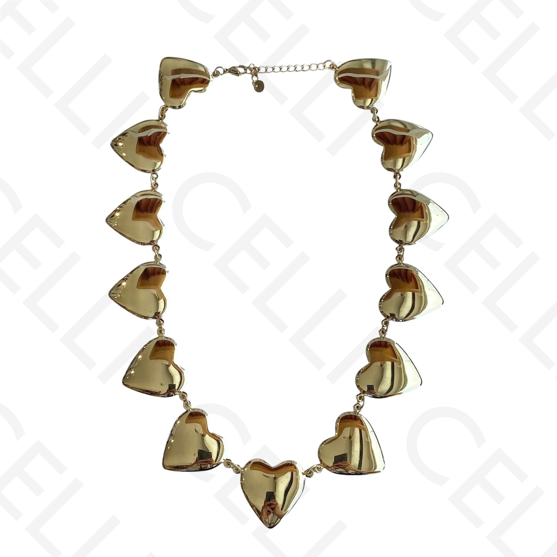 不锈钢项链 - 多颗心形奖牌