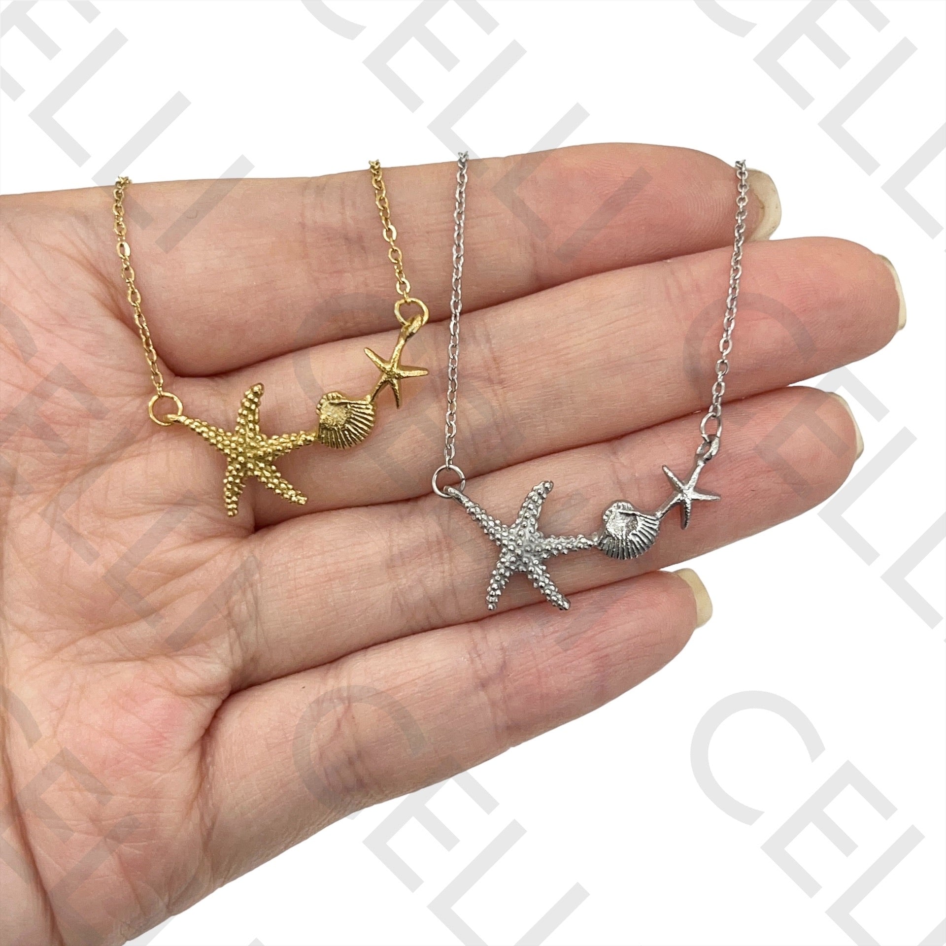 钢制项链 - 海星和贝壳中间件