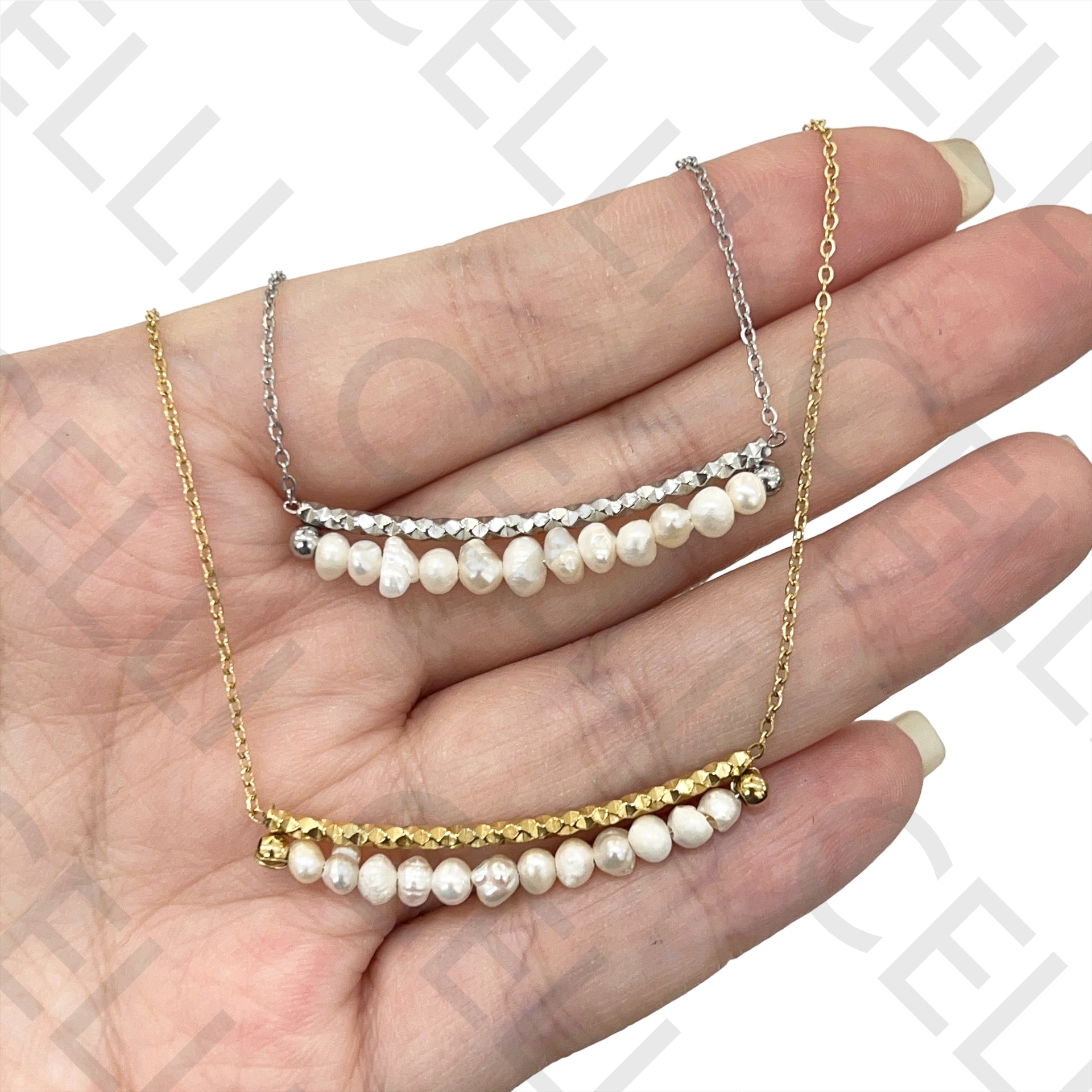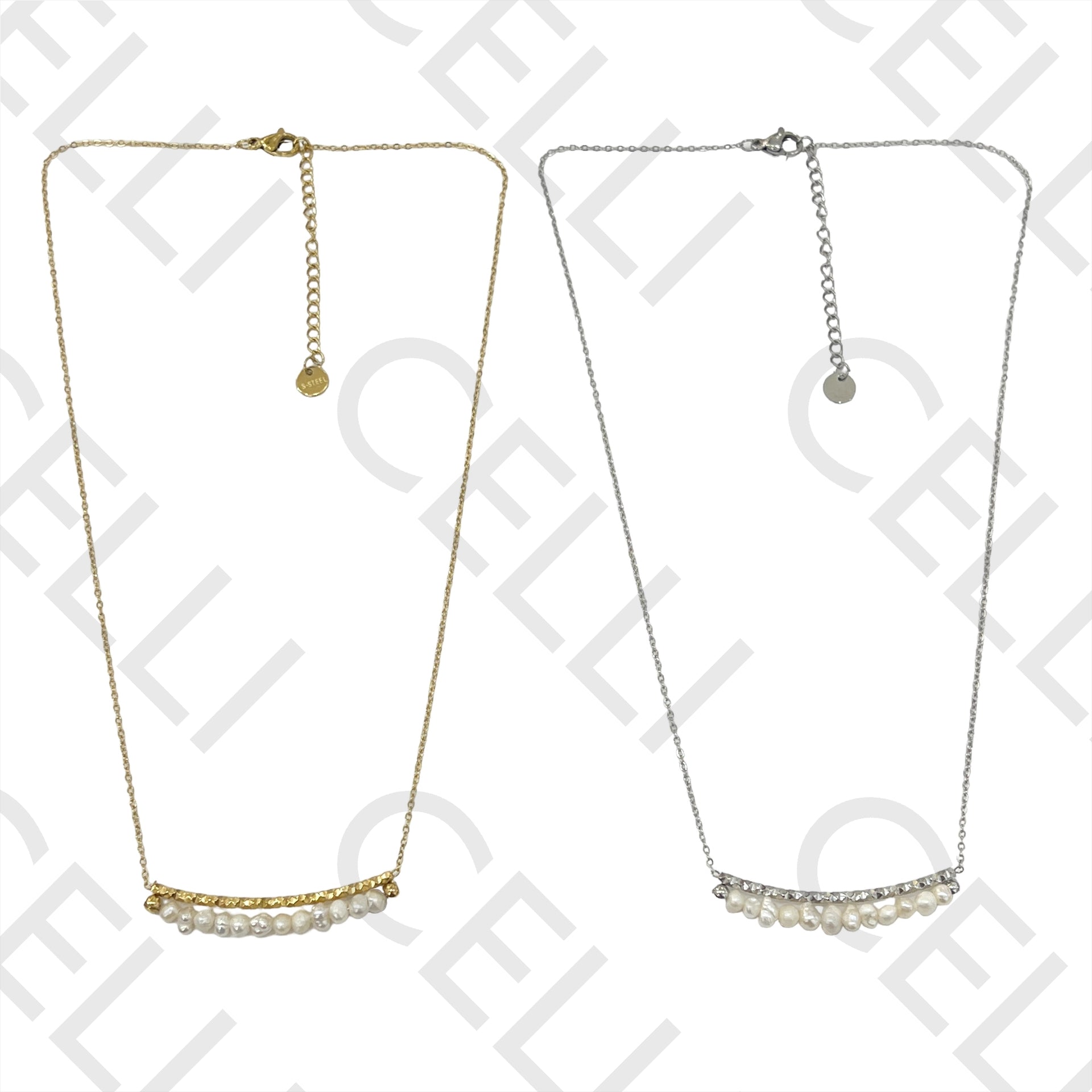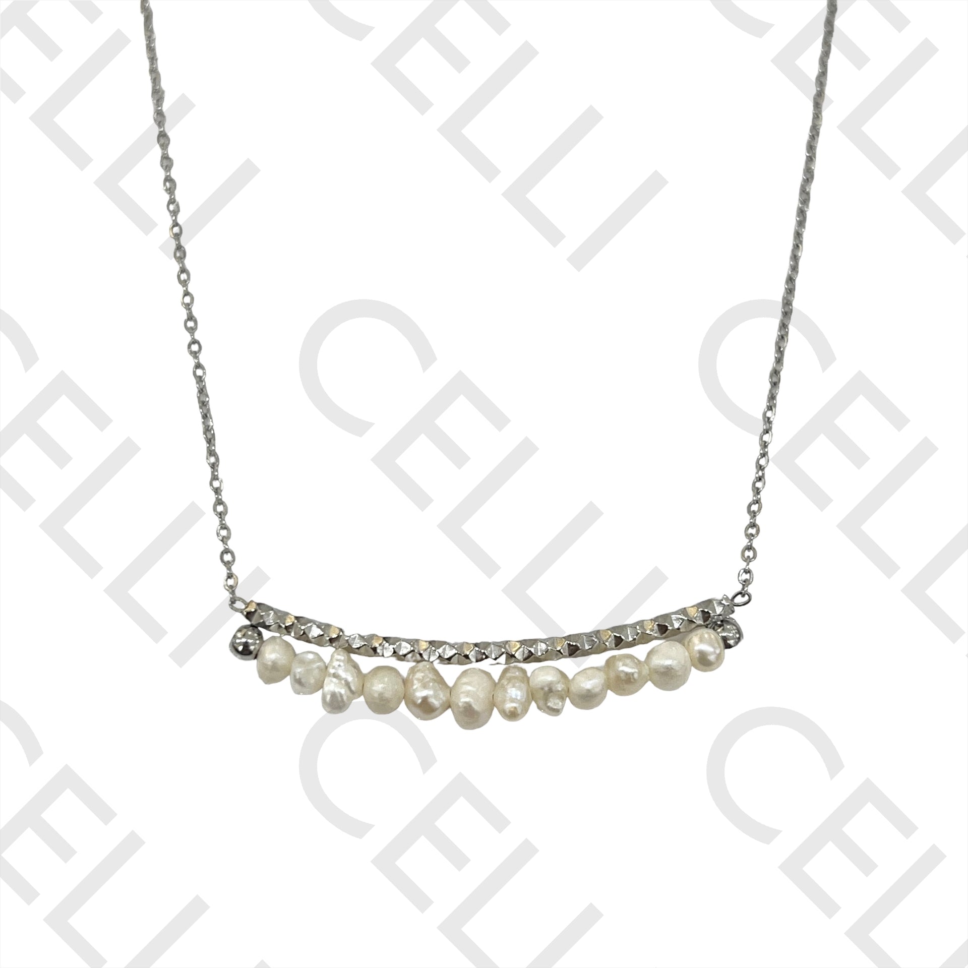 钢制项链 - 淡水珍珠