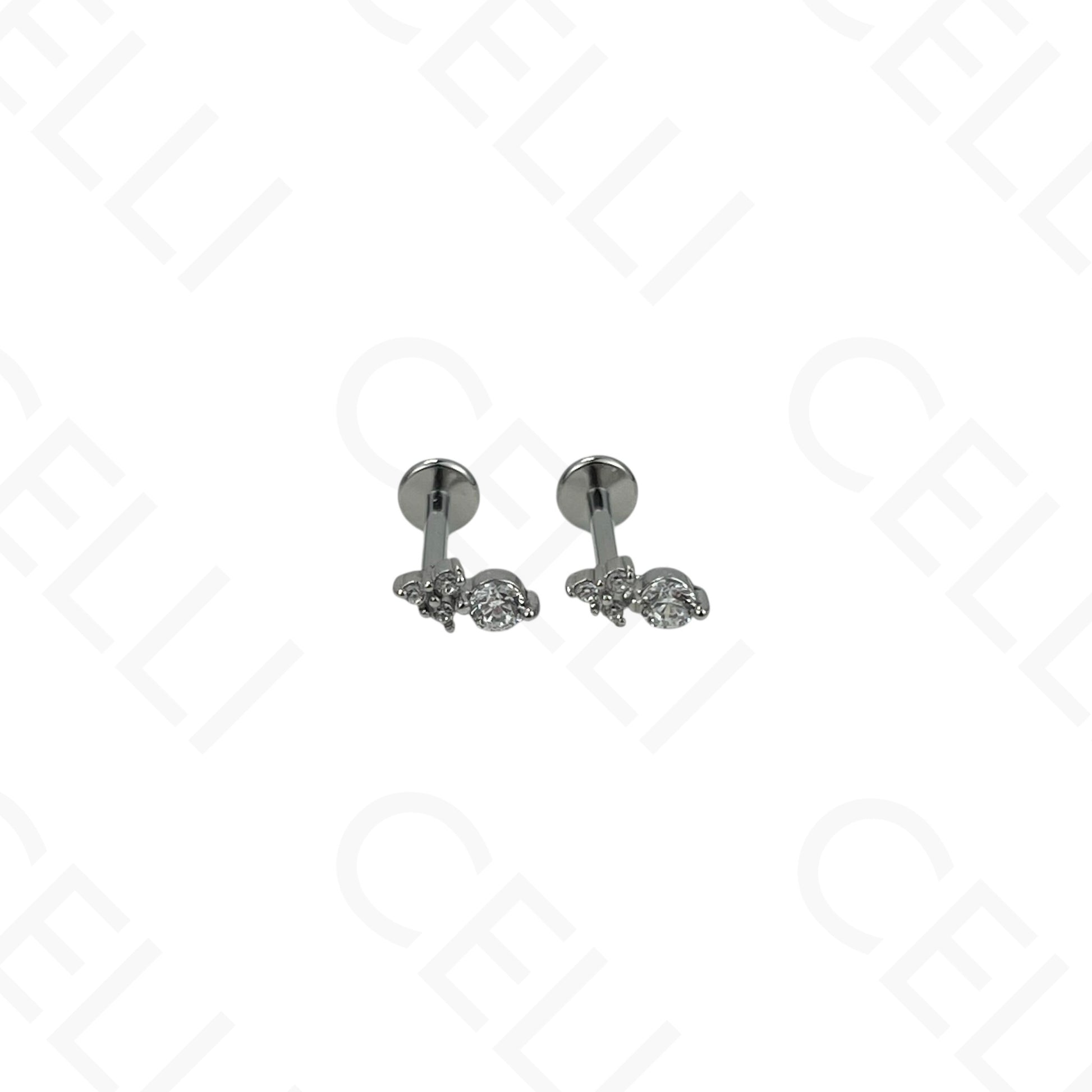 铑镀耳环镶嵌锆石