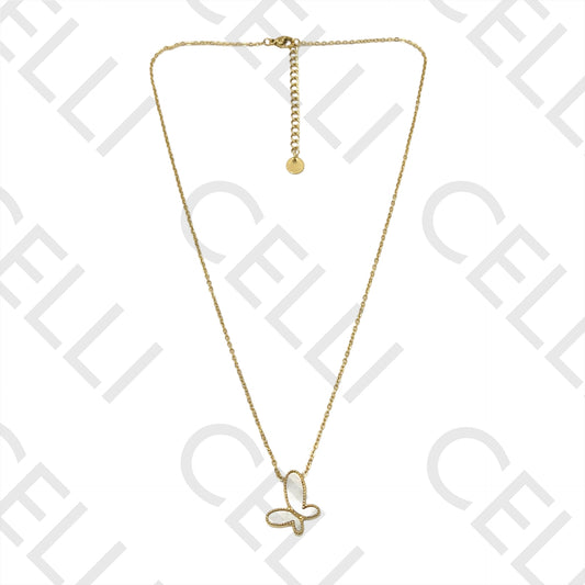 不锈钢项链 - 蝴蝶与珍珠母