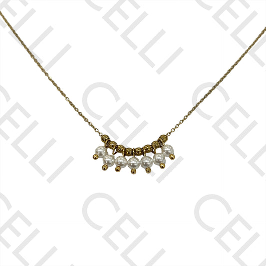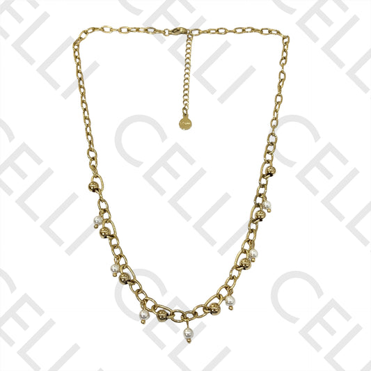不锈钢项链 - 珍珠与钢球