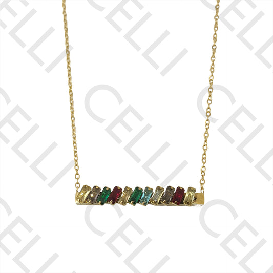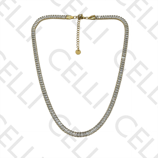 不锈钢项链 - 矩形锆石