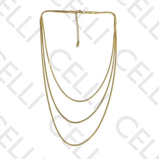 扁平蛇形不锈钢项链 - 3件套