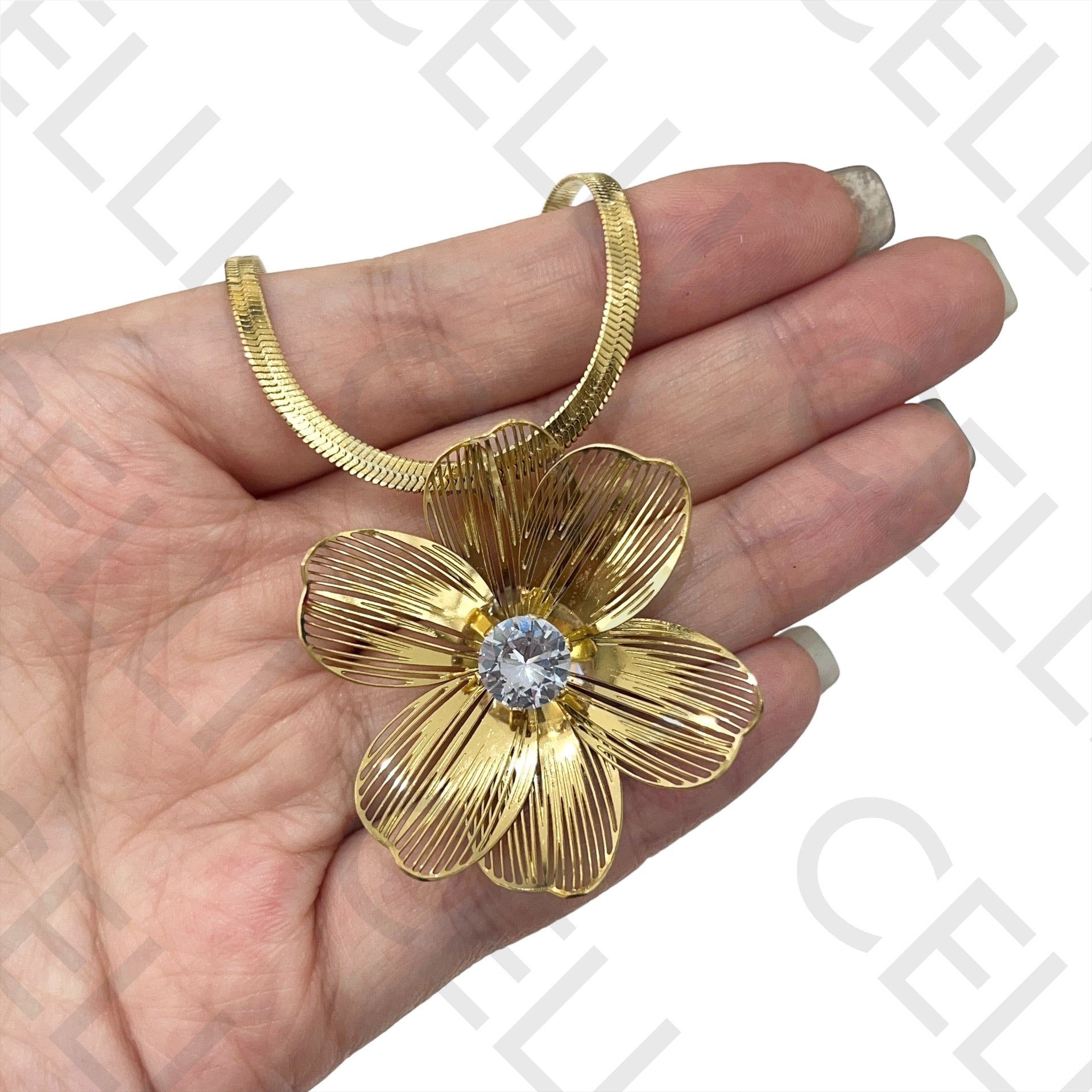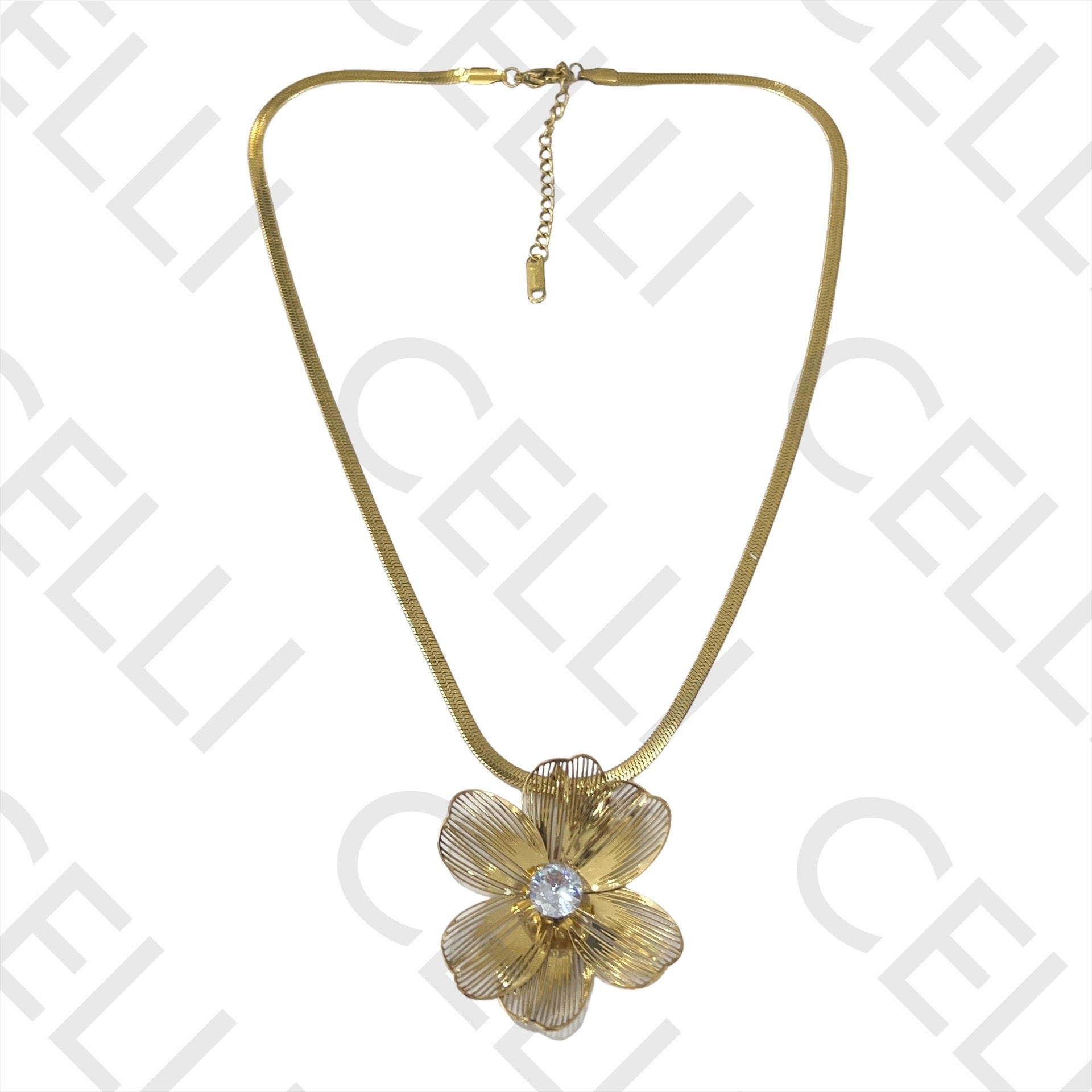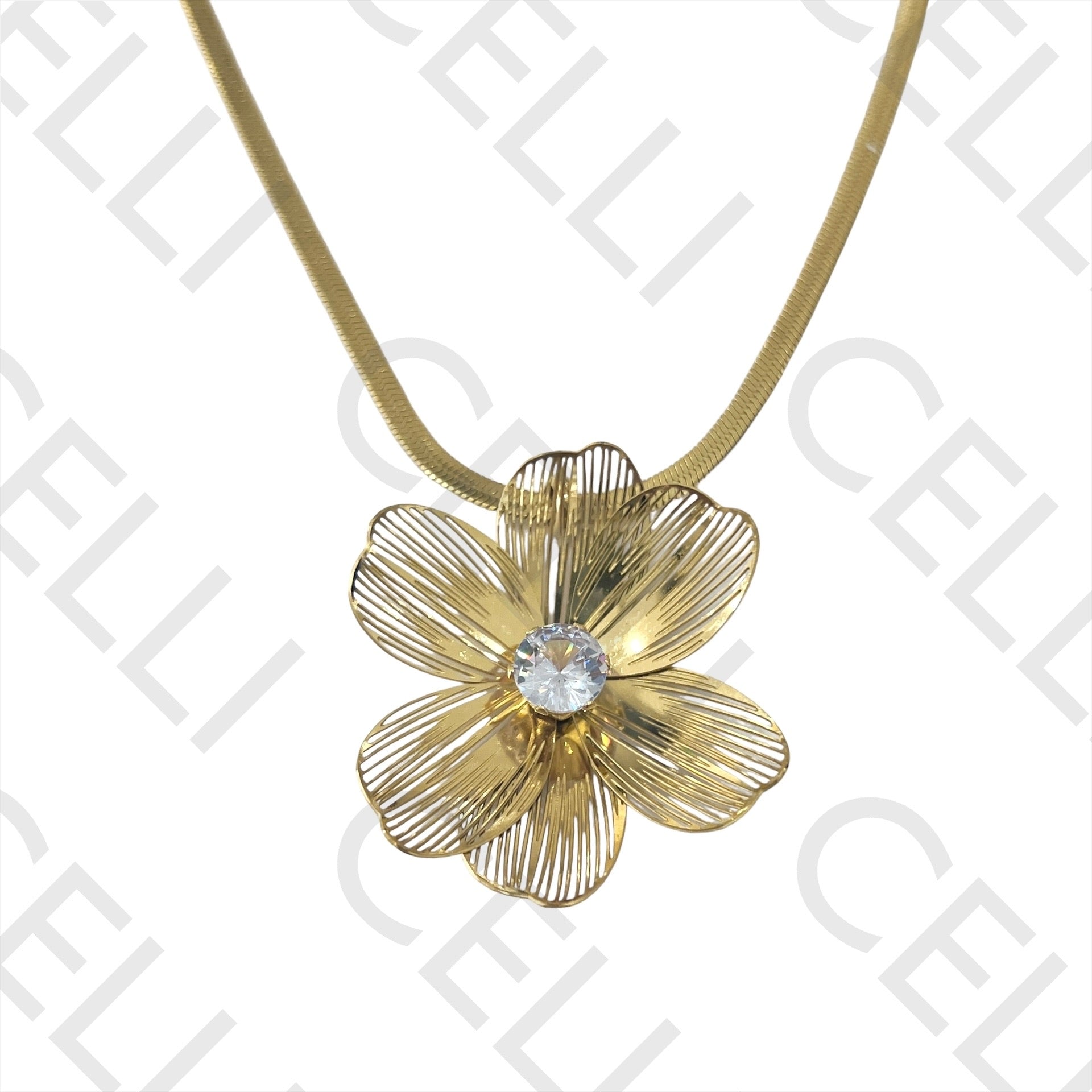 钢制项链 - 带钻花朵 钢制项链 - 带钻花朵 钢制项链 - 带钻花朵