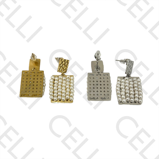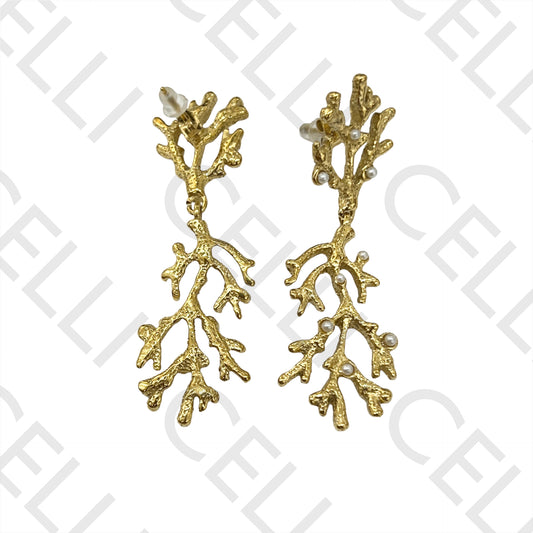 不锈钢耳环 - 带珍珠的珊瑚细节