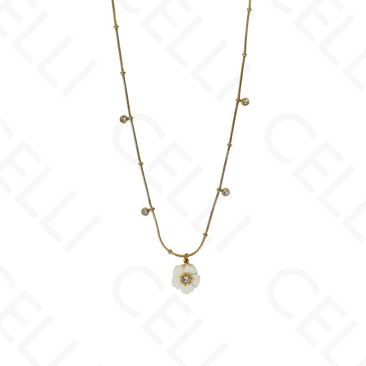 钢制项链/手链 - 带有闪亮宝石的小花