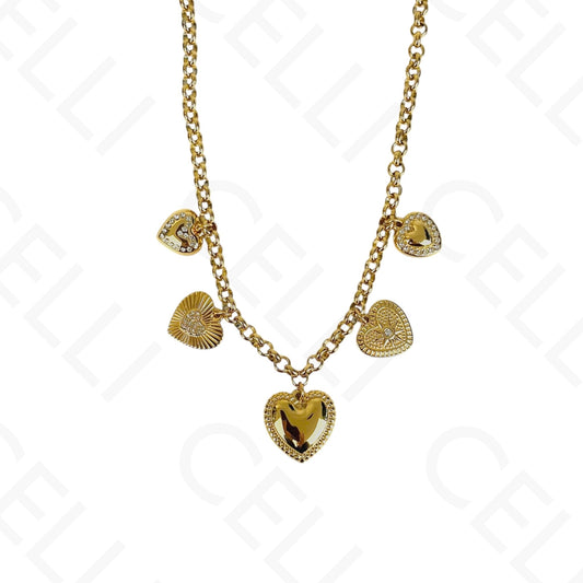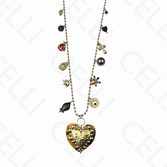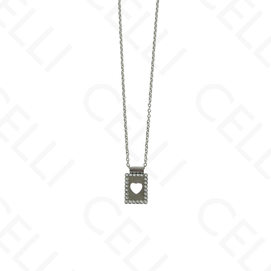 钢制项链 - 多吊坠,心形开合