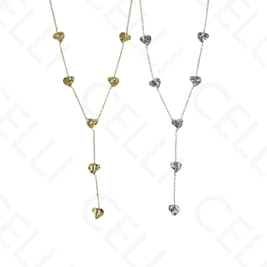 钢制项链 - 多颗心形吊坠