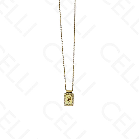 钢制项链/手链 - 带有闪亮宝石的小矩形(副本)