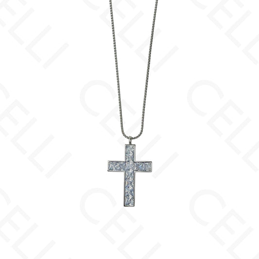 钢制项链 - 带亮钻的十字架