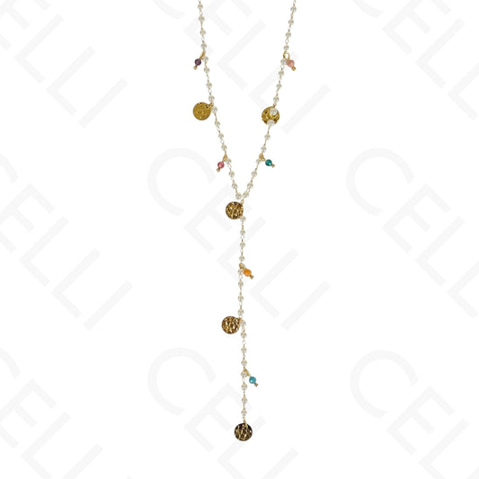 钢制项链 - Y形圆网和珍珠