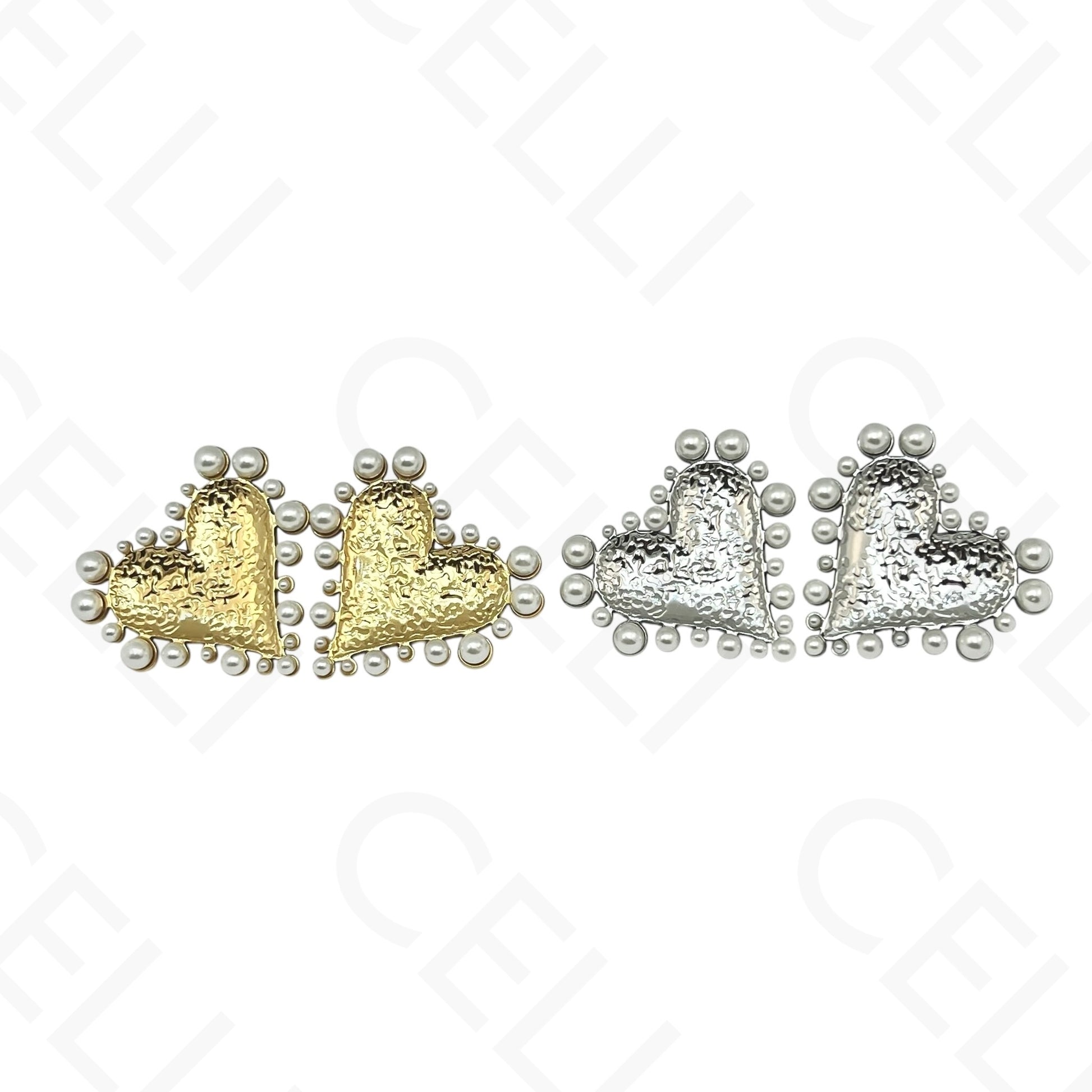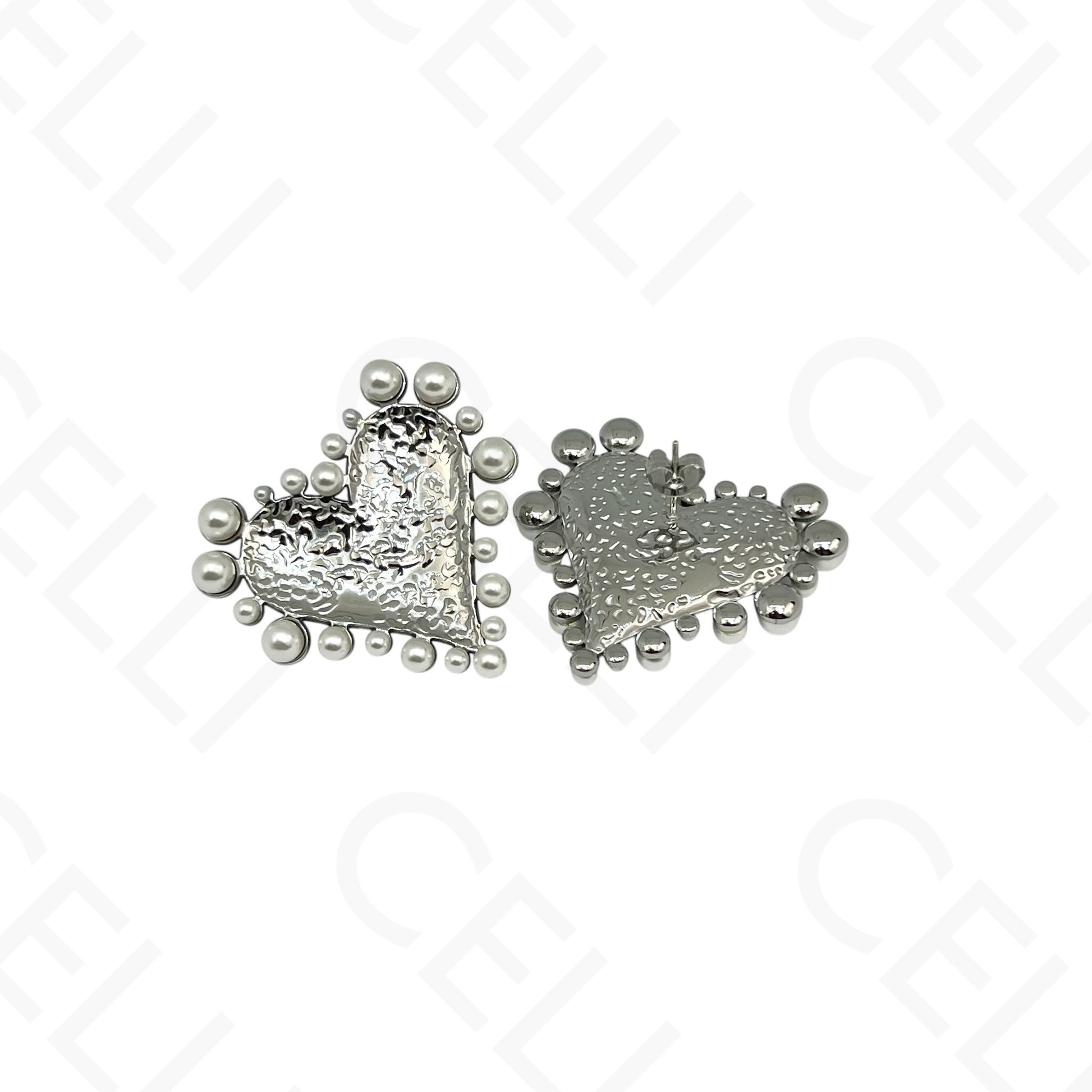 钢耳环 - 带珍珠的心形