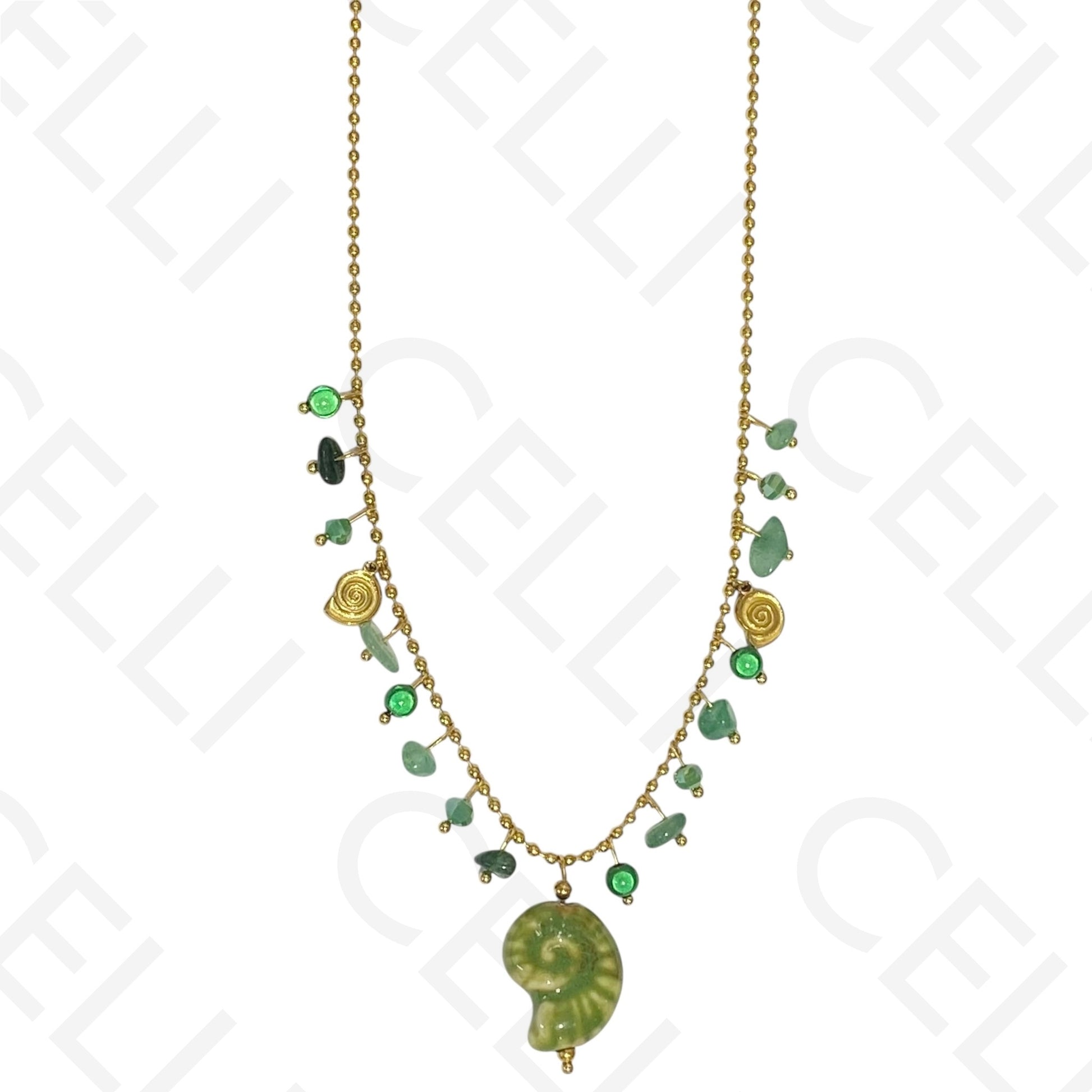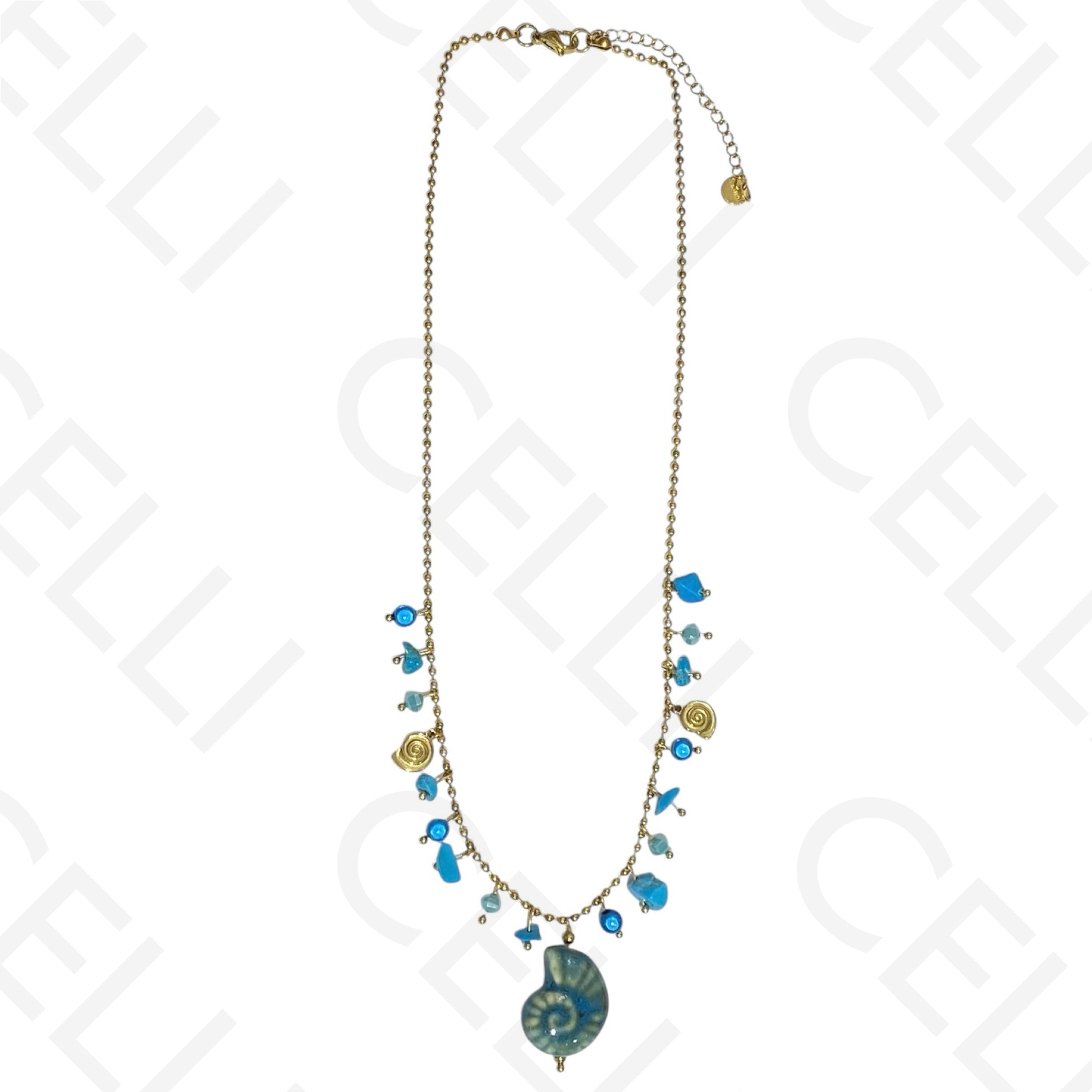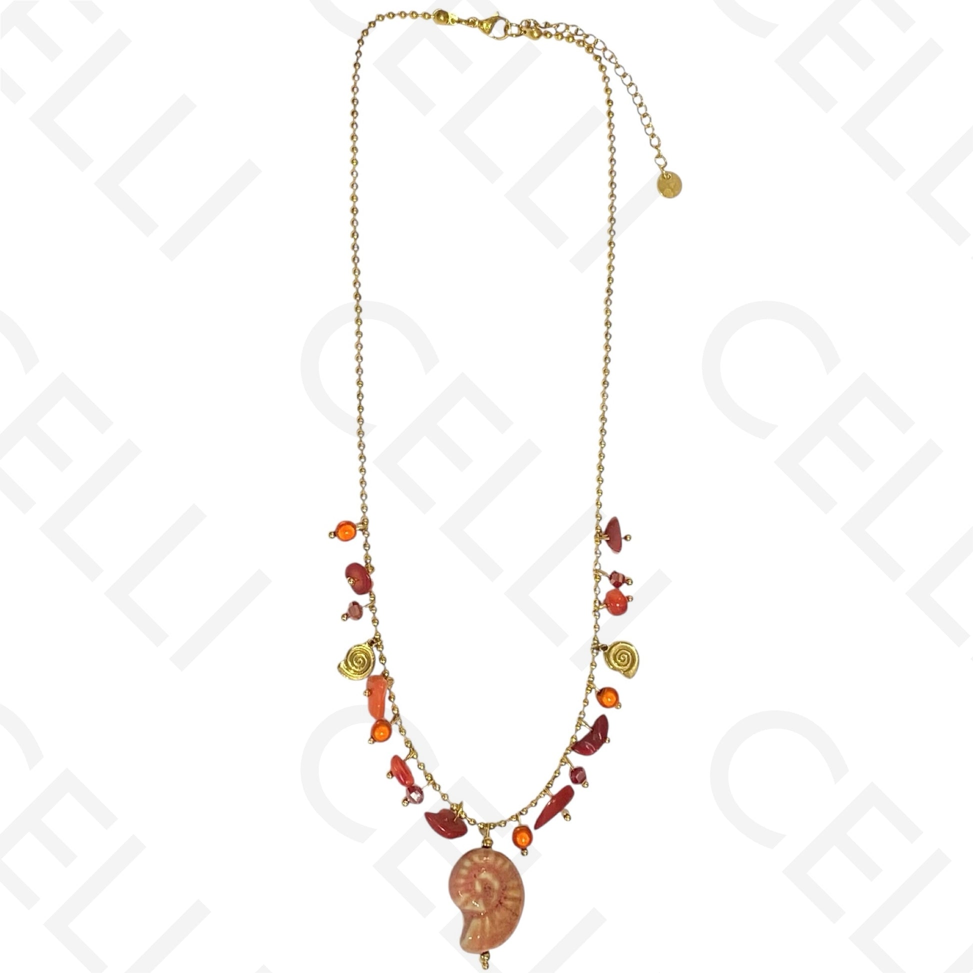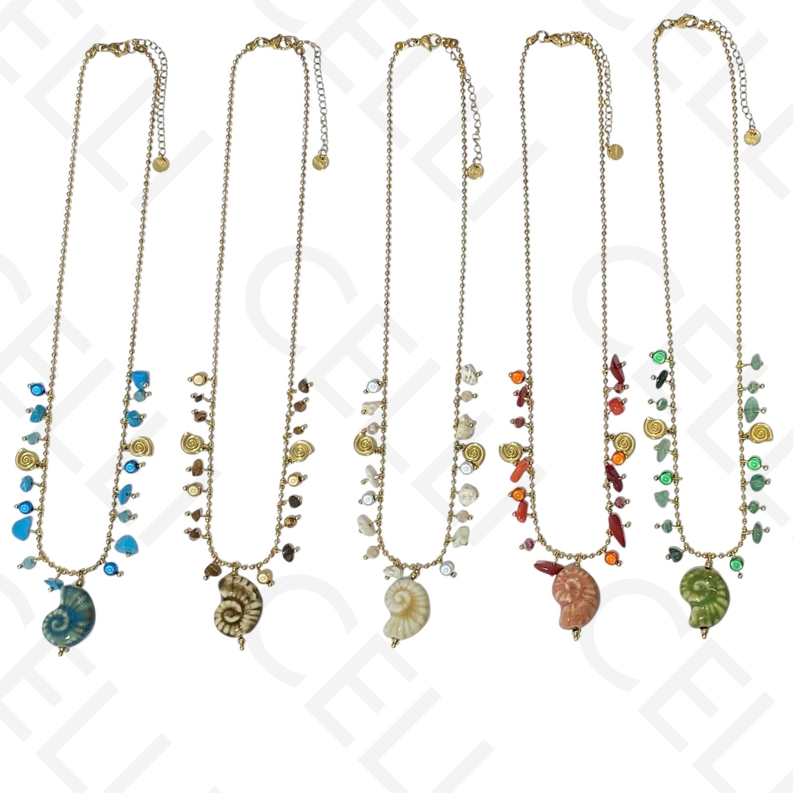 钢制项链 - 彩色石头,彩色螺旋贝壳
