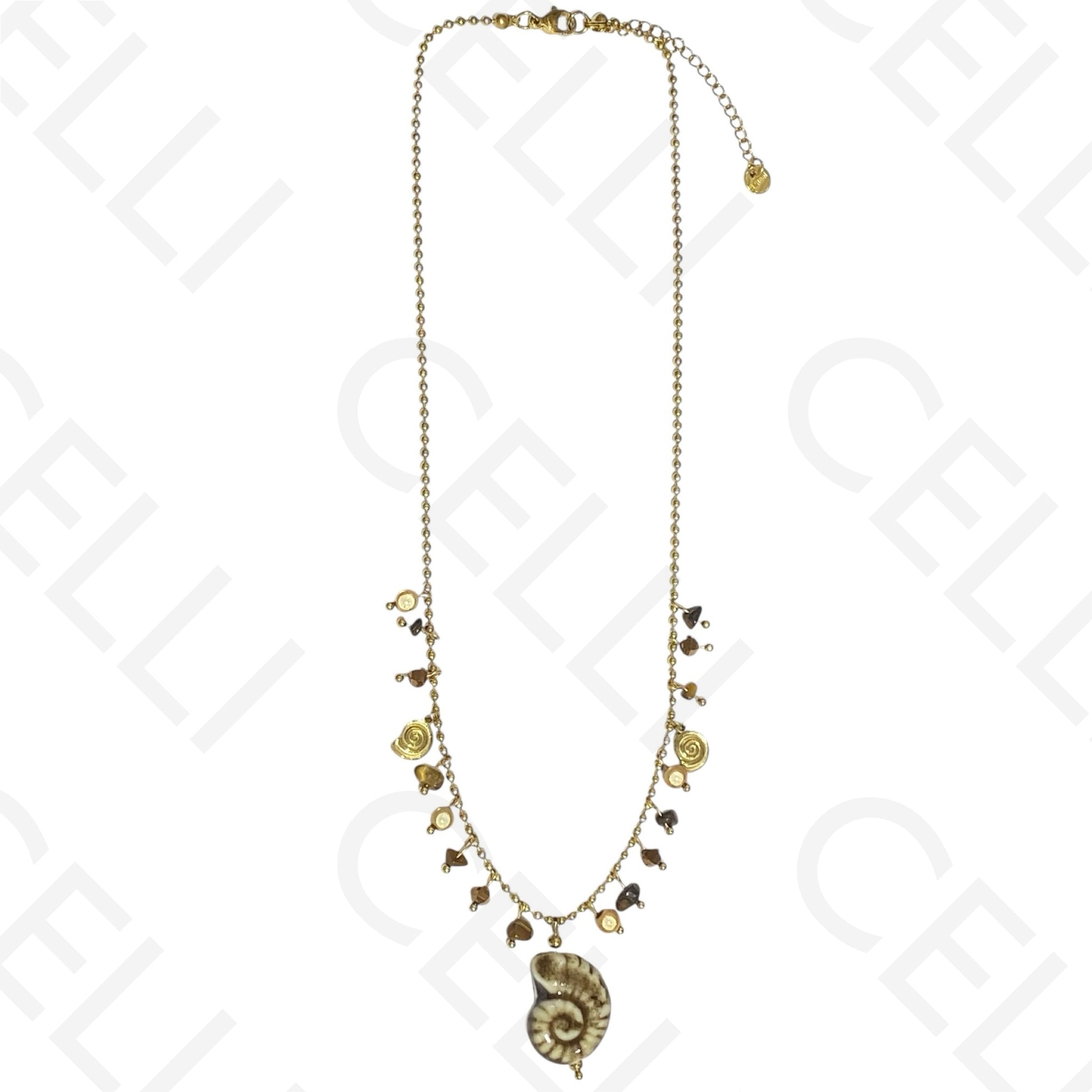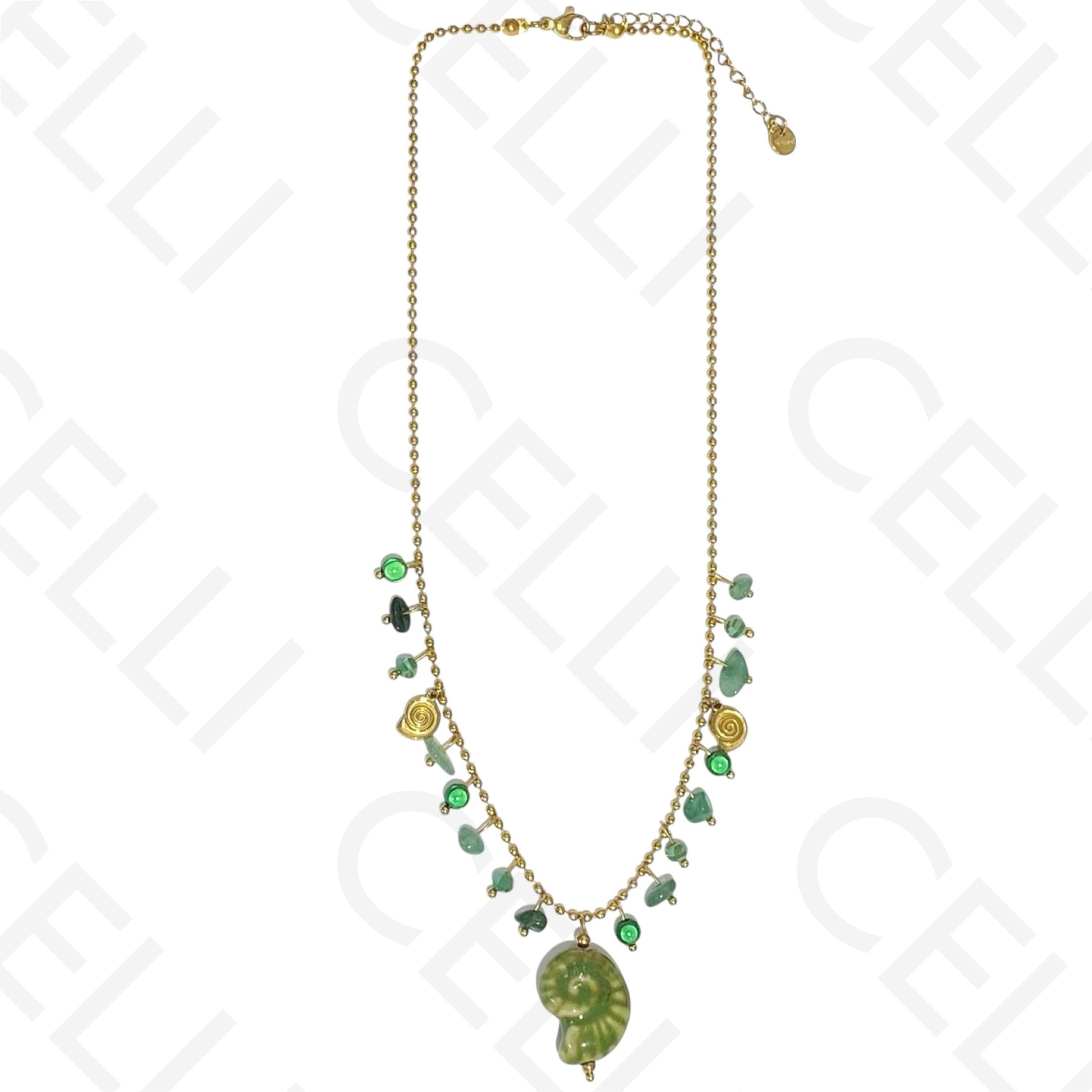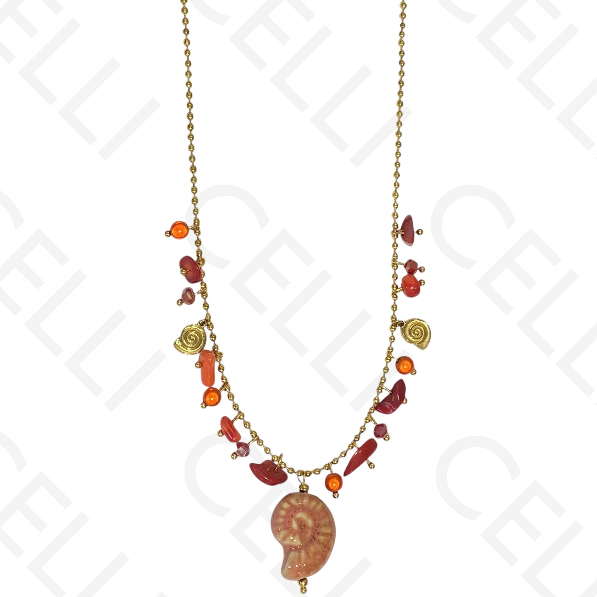 钢制项链 - 彩色石头,彩色螺旋贝壳