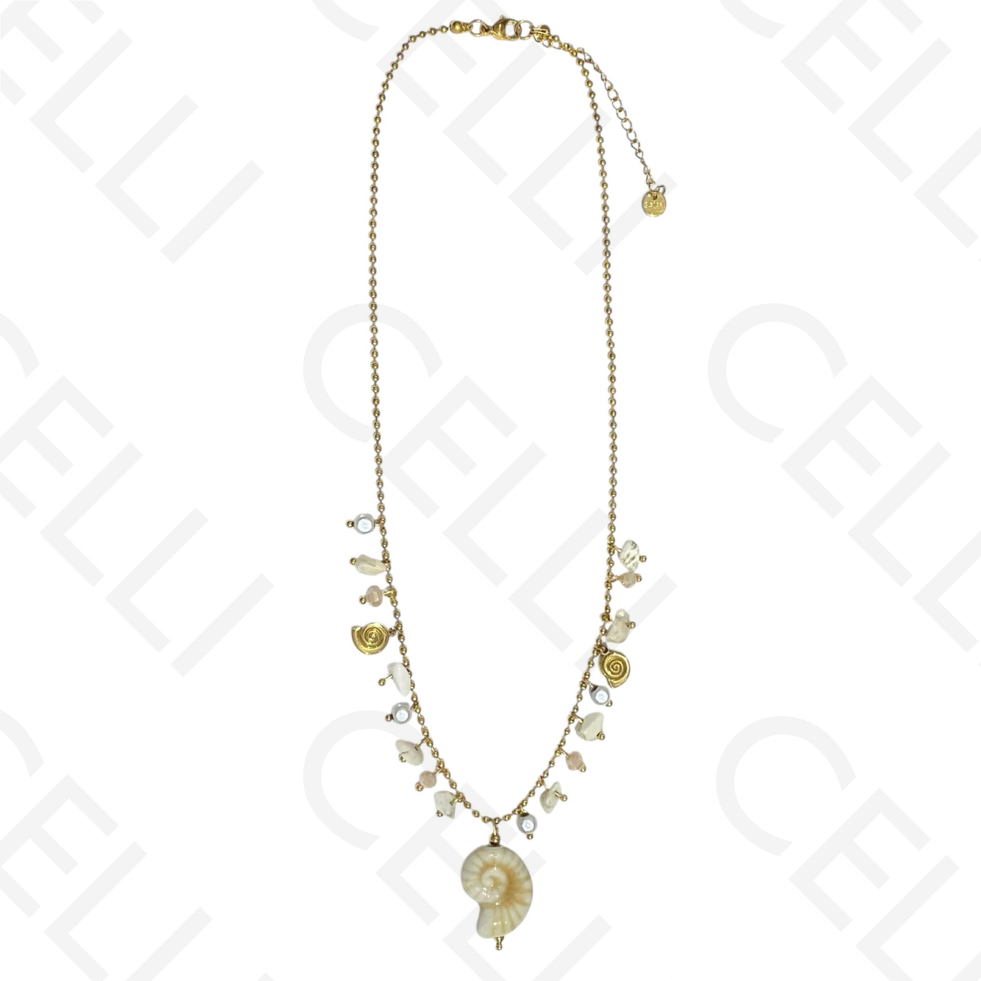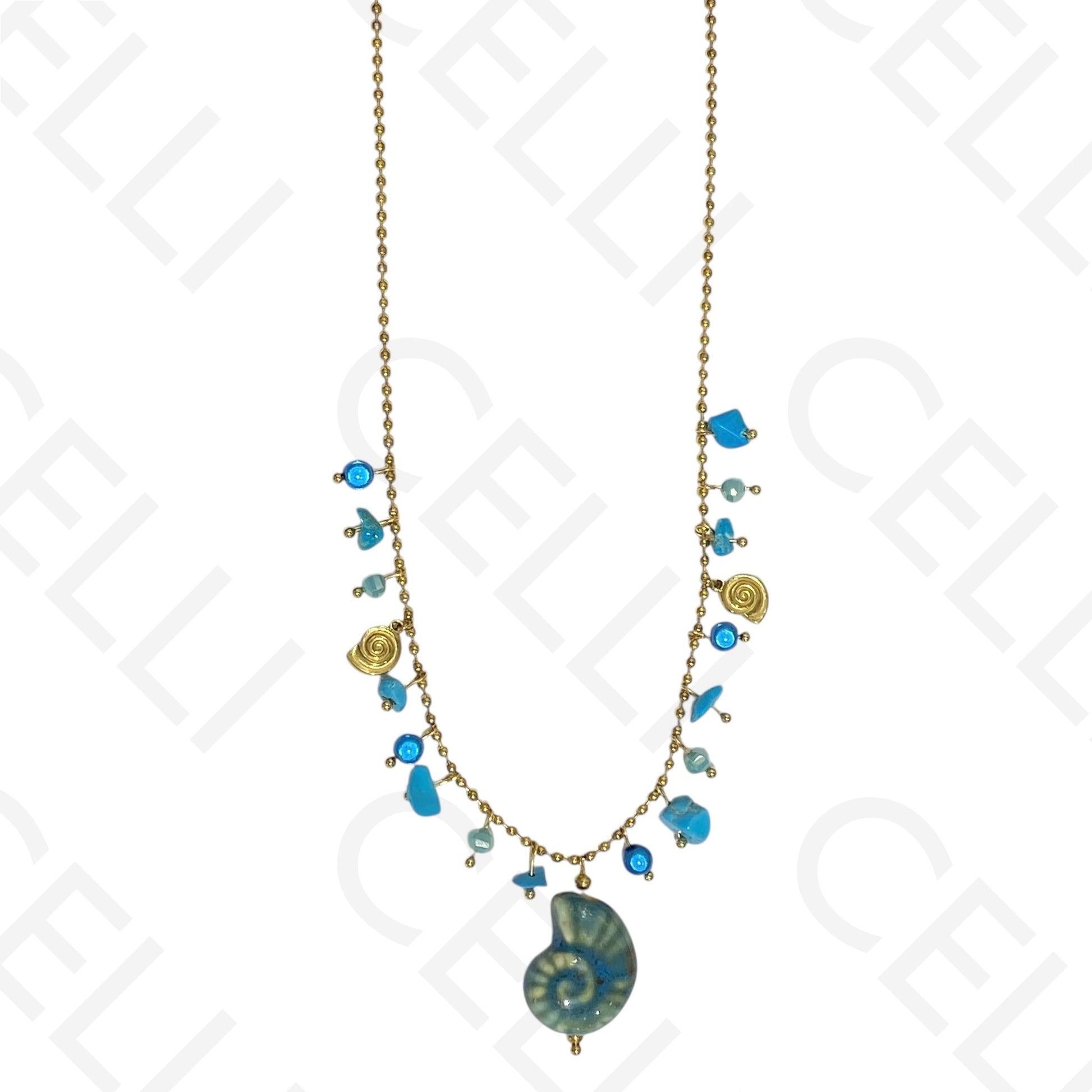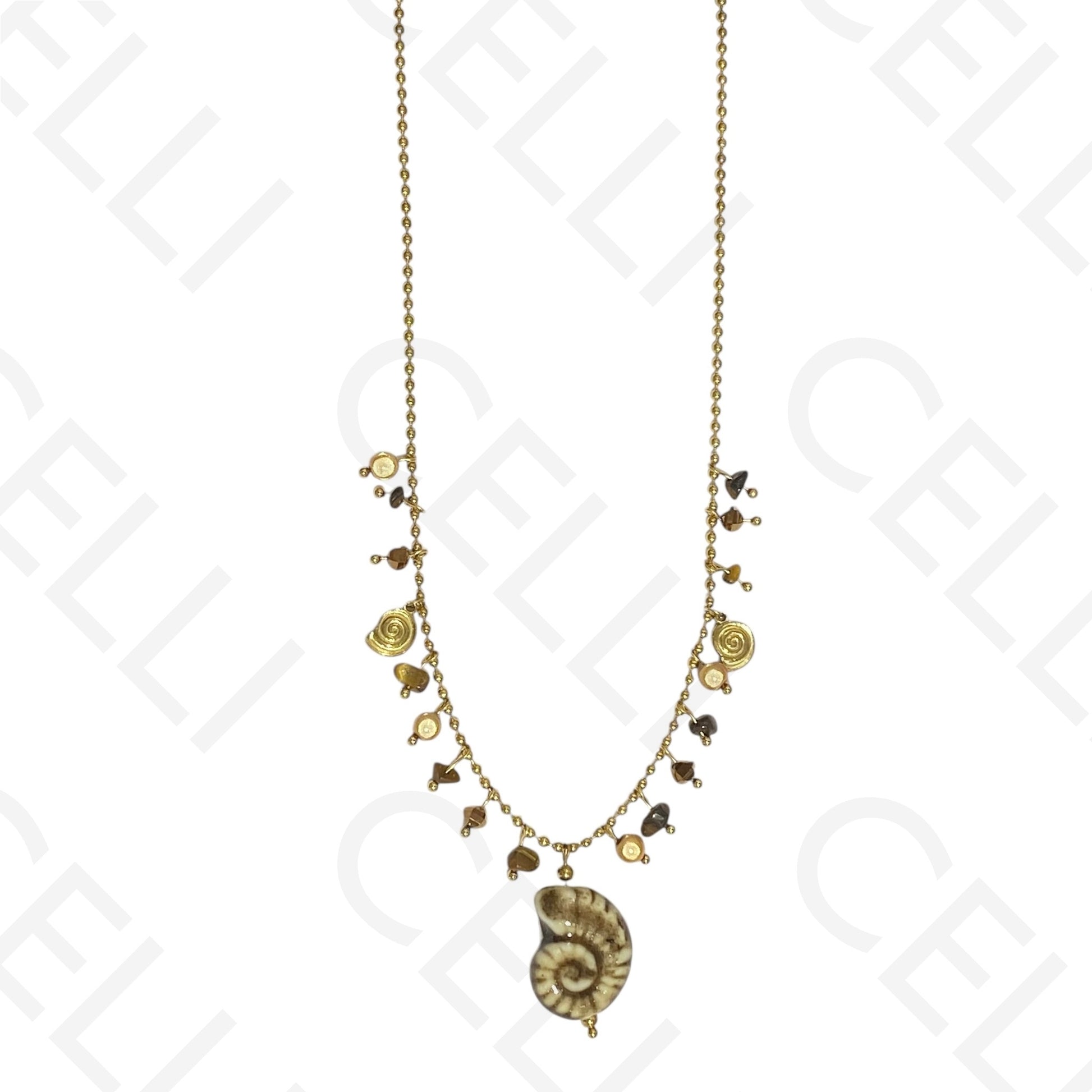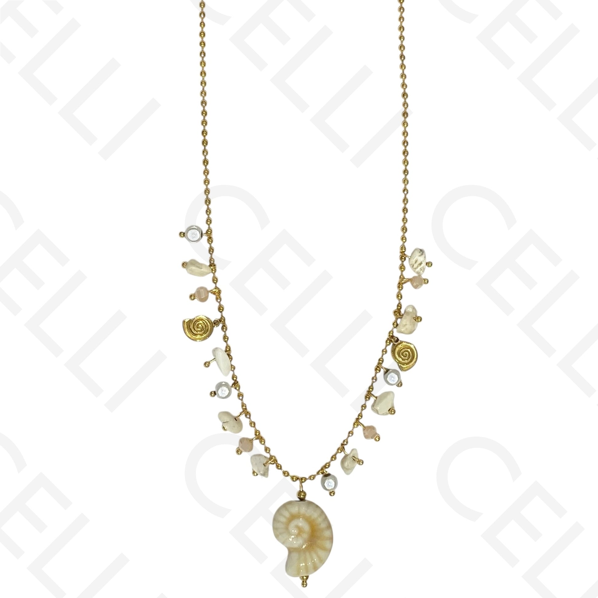 钢制项链 - 彩色石头,彩色螺旋贝壳