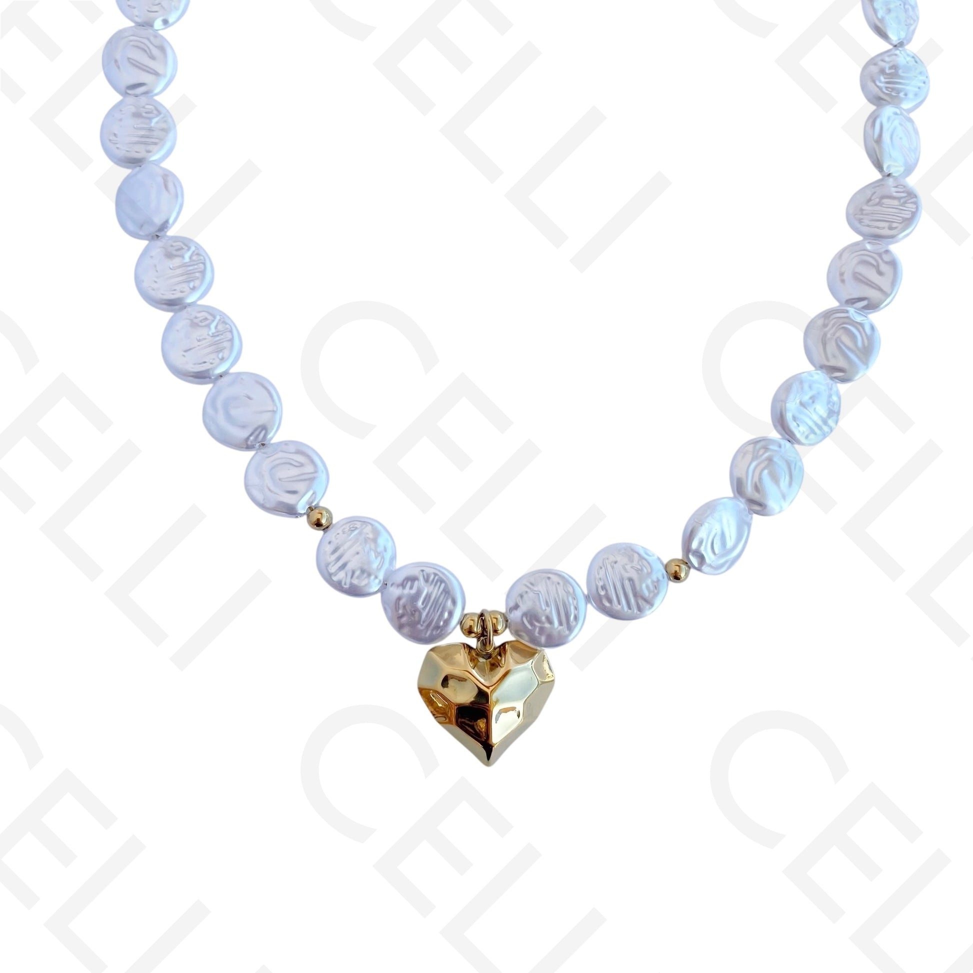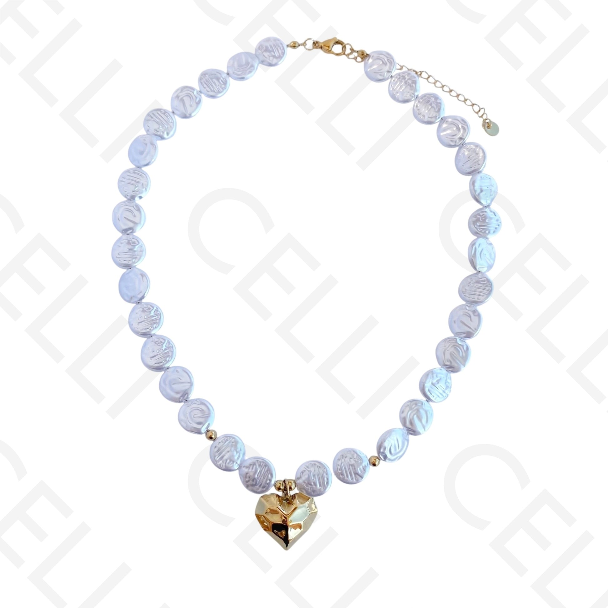 钢制项链 - 圆形珍珠和心形吊坠 钢制项链 - 圆形珍珠和心形吊坠