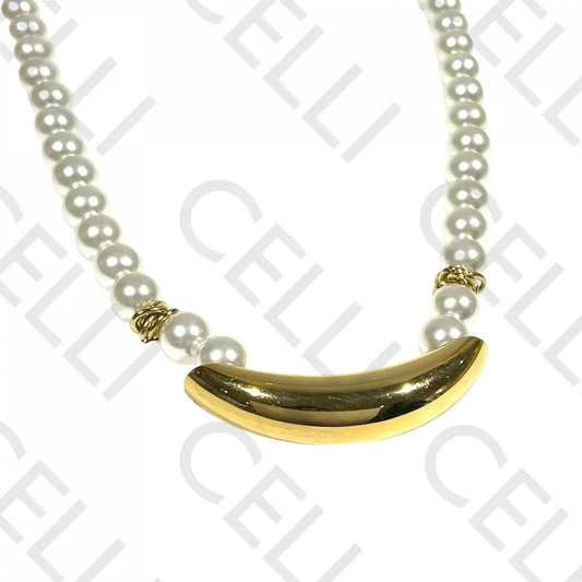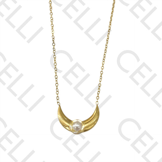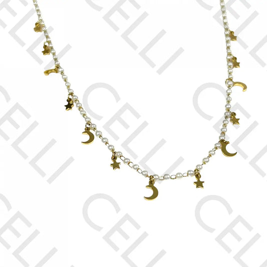 不锈钢项链 - 珍珠搭配月亮星星吊坠