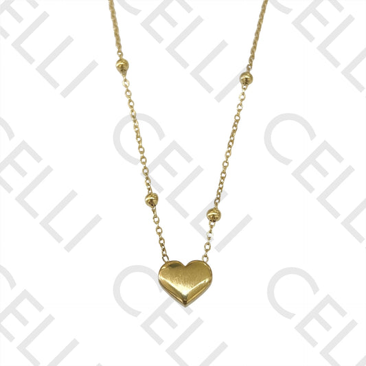 不锈钢项链/手链 - 镶锆石心形吊坠