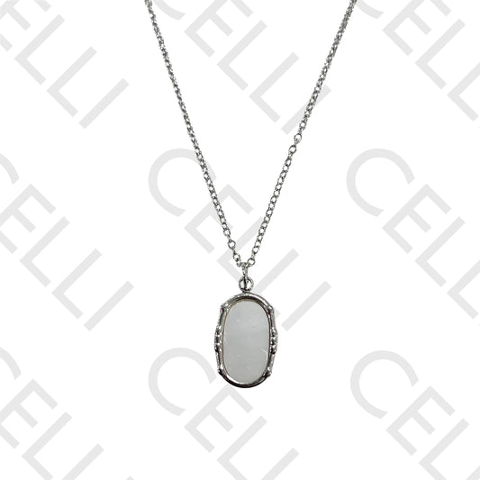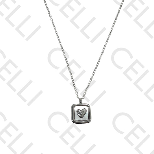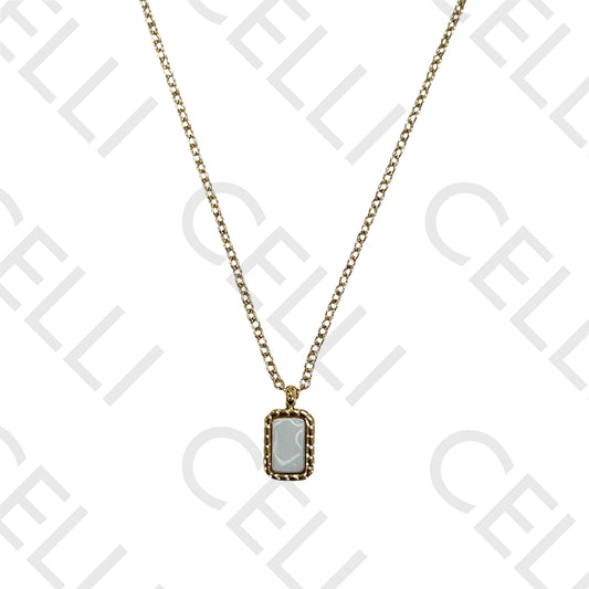 不锈钢项链 - 镶有珍珠母的矩形吊坠