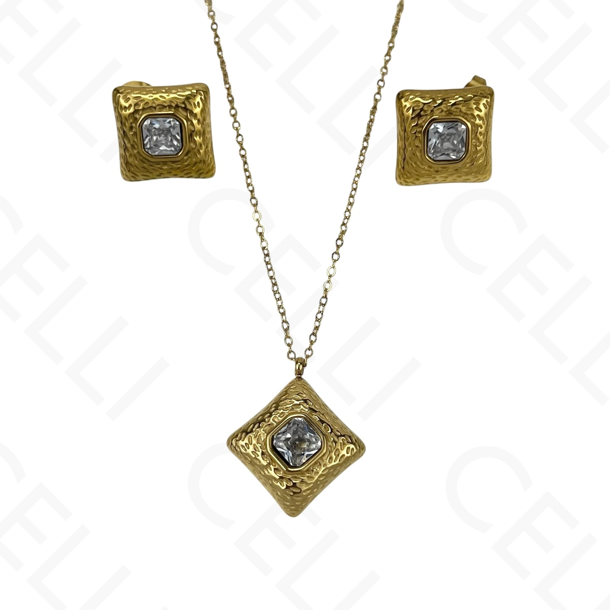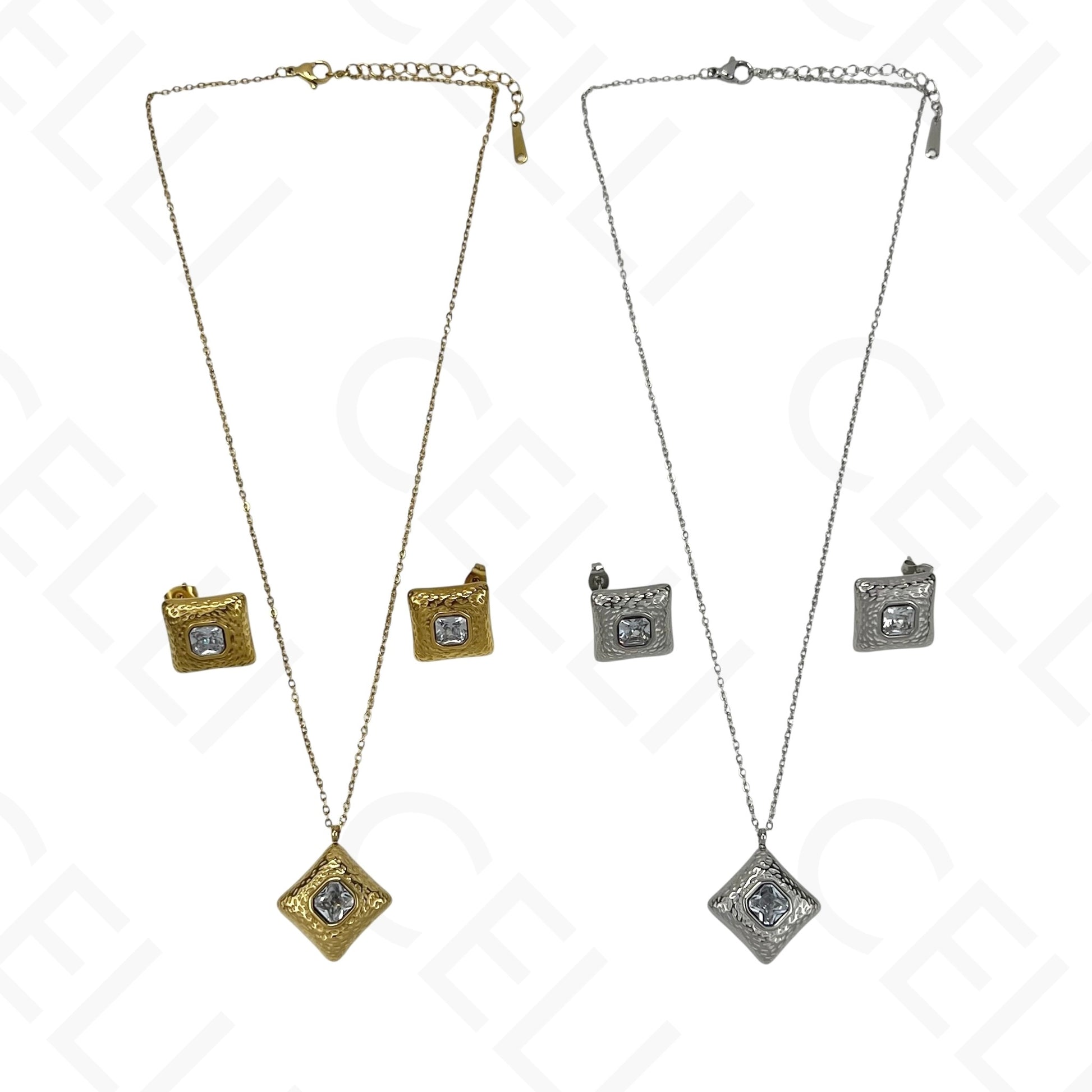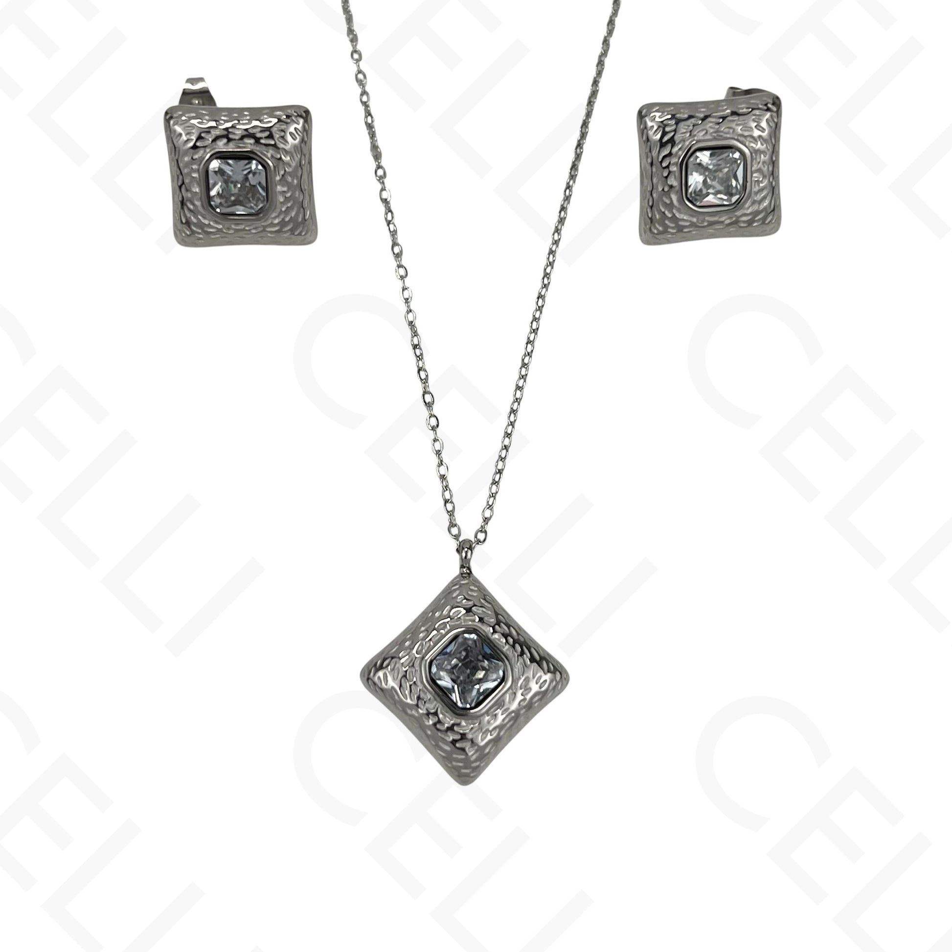 钢制耳环 - 带亮钻的方形雕刻